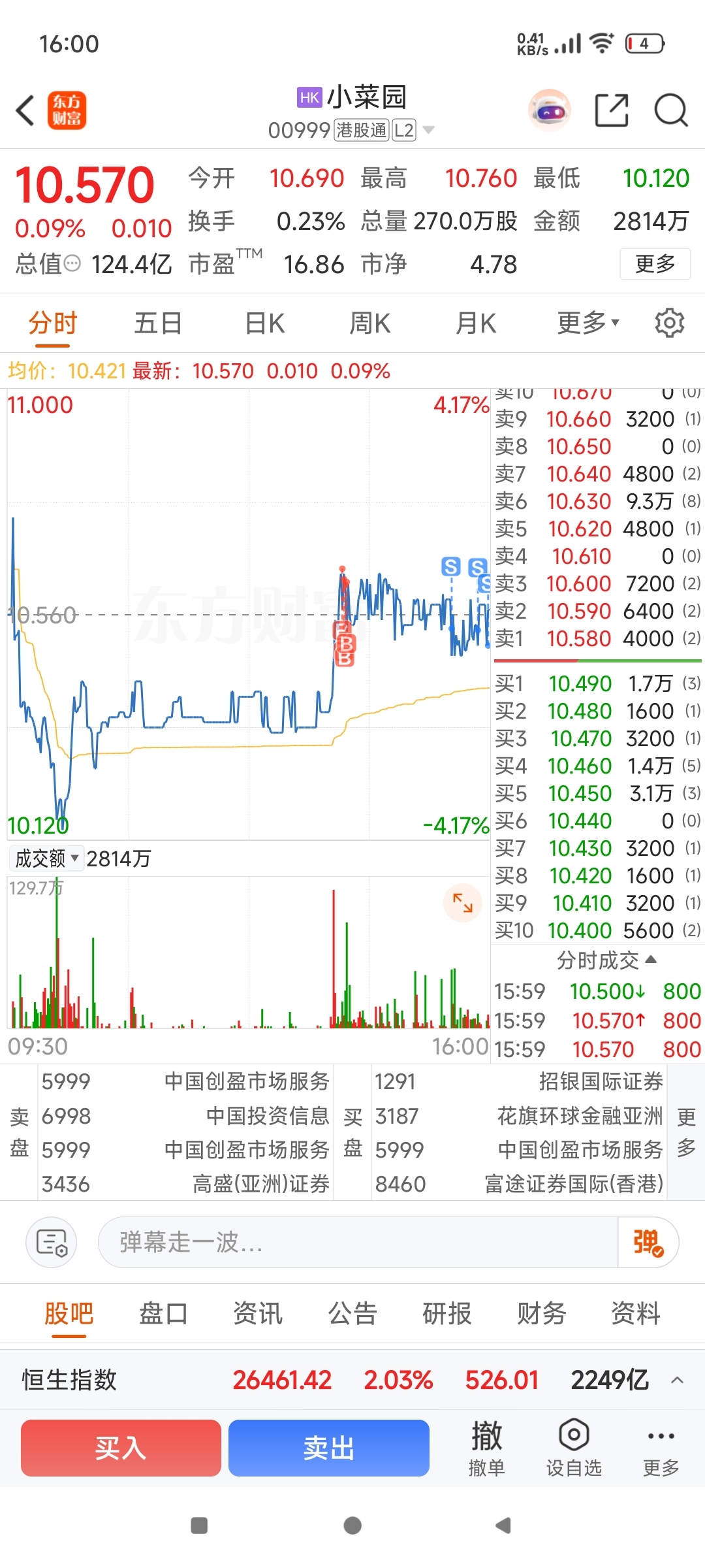 $小菜园(HK|00999)$ 真是老千股呀,买进去出不来,还得割肉!而且顶部特征明显,下跌趋势…