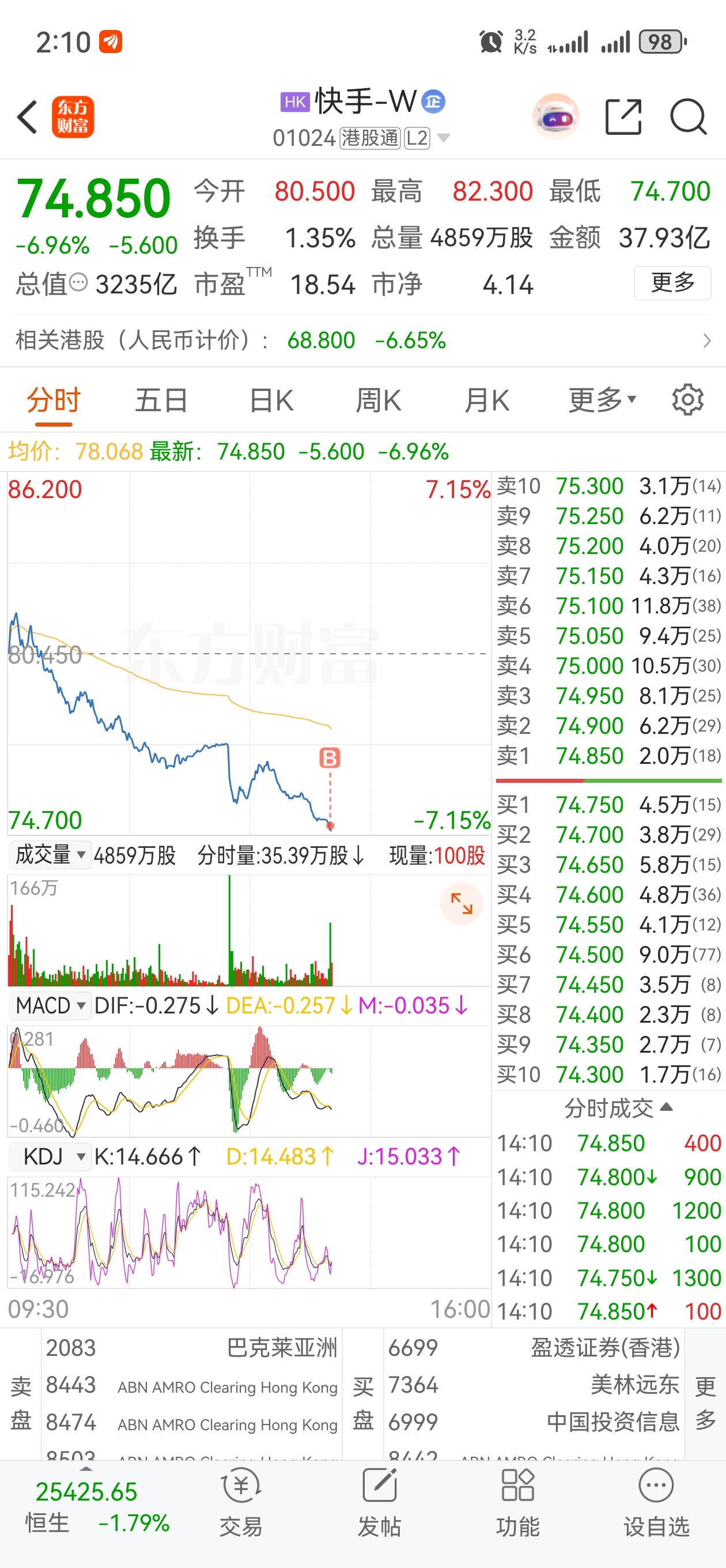 $快手-W(HK|01024)$ 。。。竟然真成交了