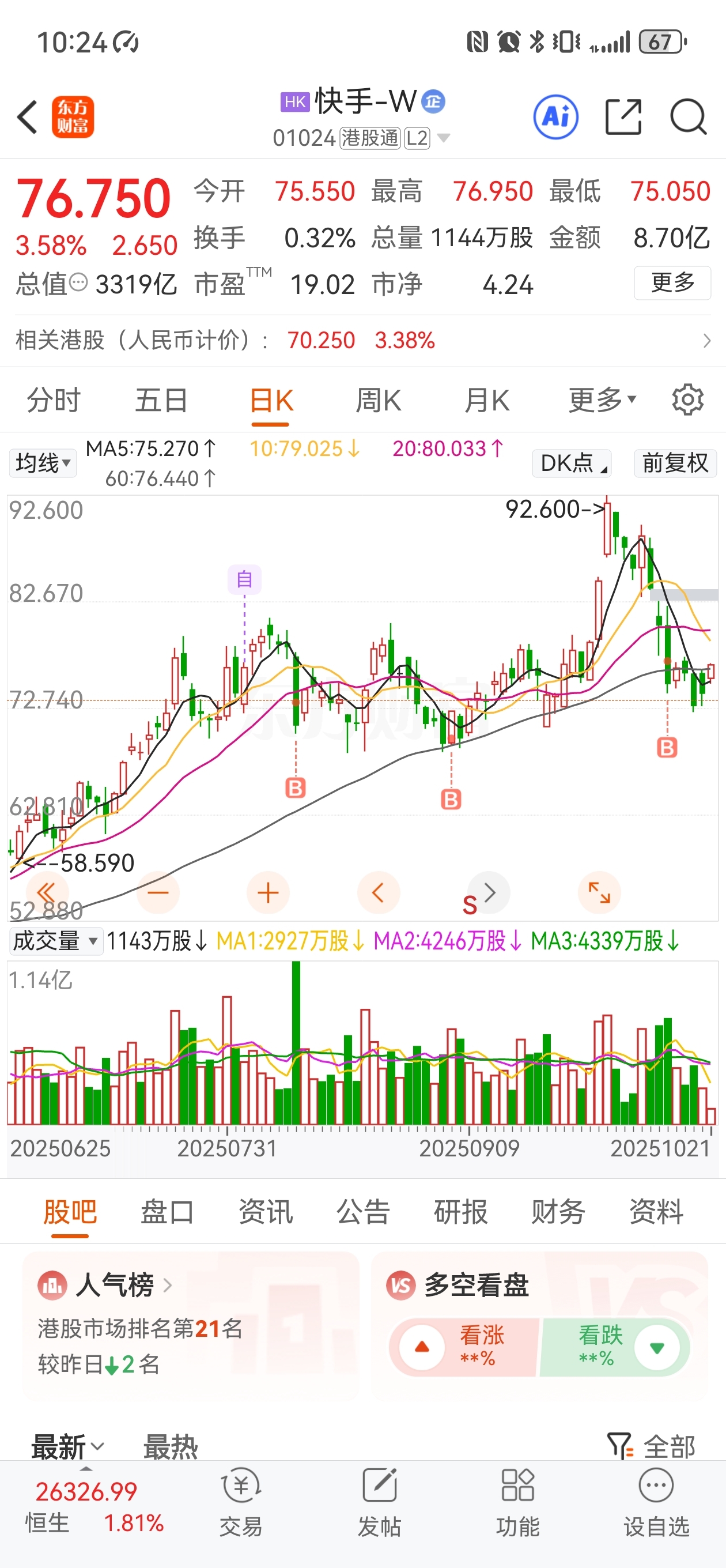 $快手-W(HK|01024)$ 我这买点指定能挣钱