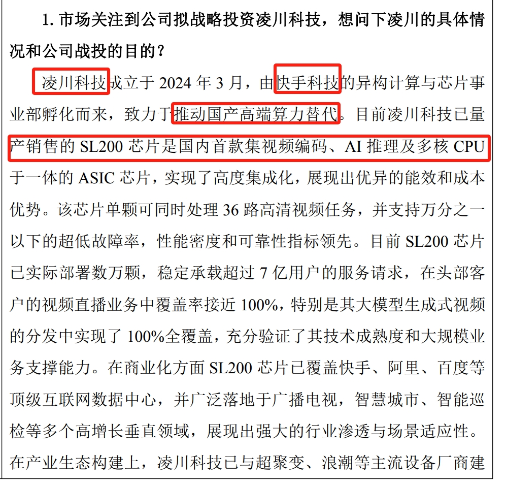 $快手-W(HK|01024)$ 快手也太低调了吧,ASIC芯片都量产了也没见公司宣传,还得在视觉中国的投资者交流里才看到