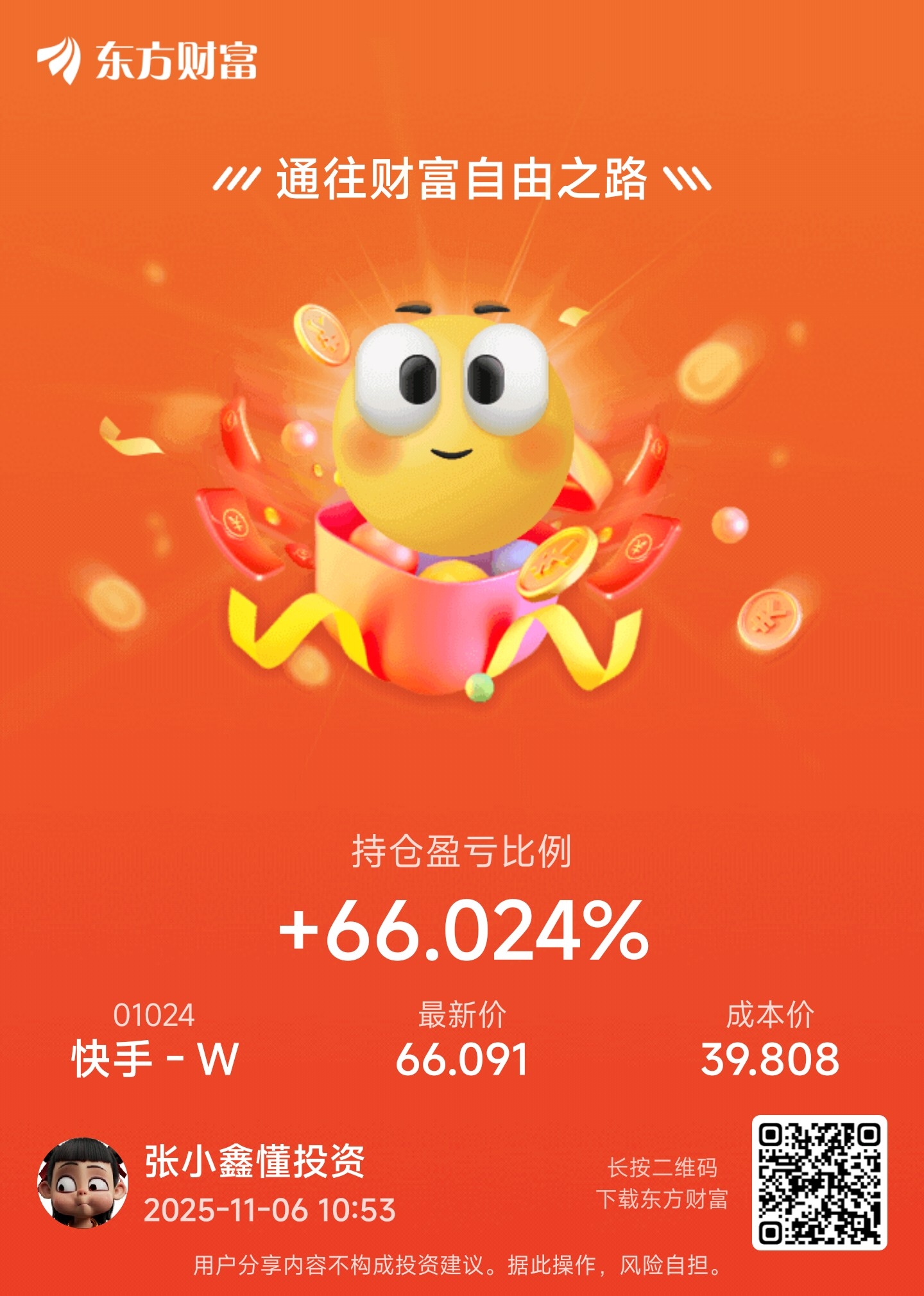 $快手-W(HK|01024)$ 年底会破新高的,不要怕,持股待涨