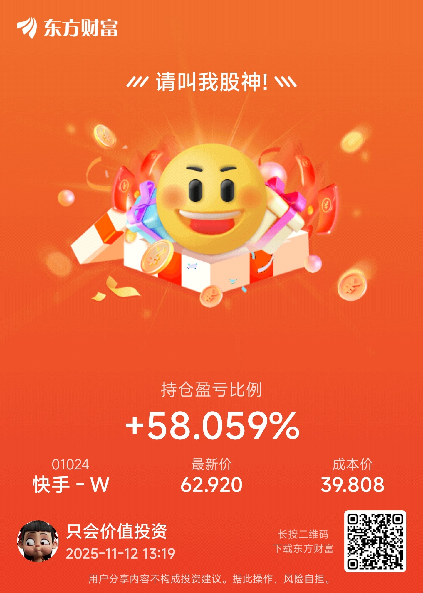 $快手-W(HK|01024)$ 主力别洗了,我这成本压根不带怕的,年底到100