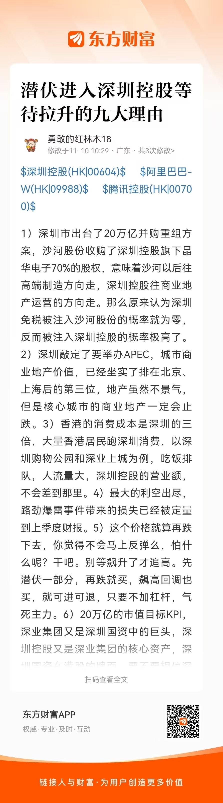 $快手-W(HK|01024)$ 潜伏进入深圳控股等待拉升的九大理由
