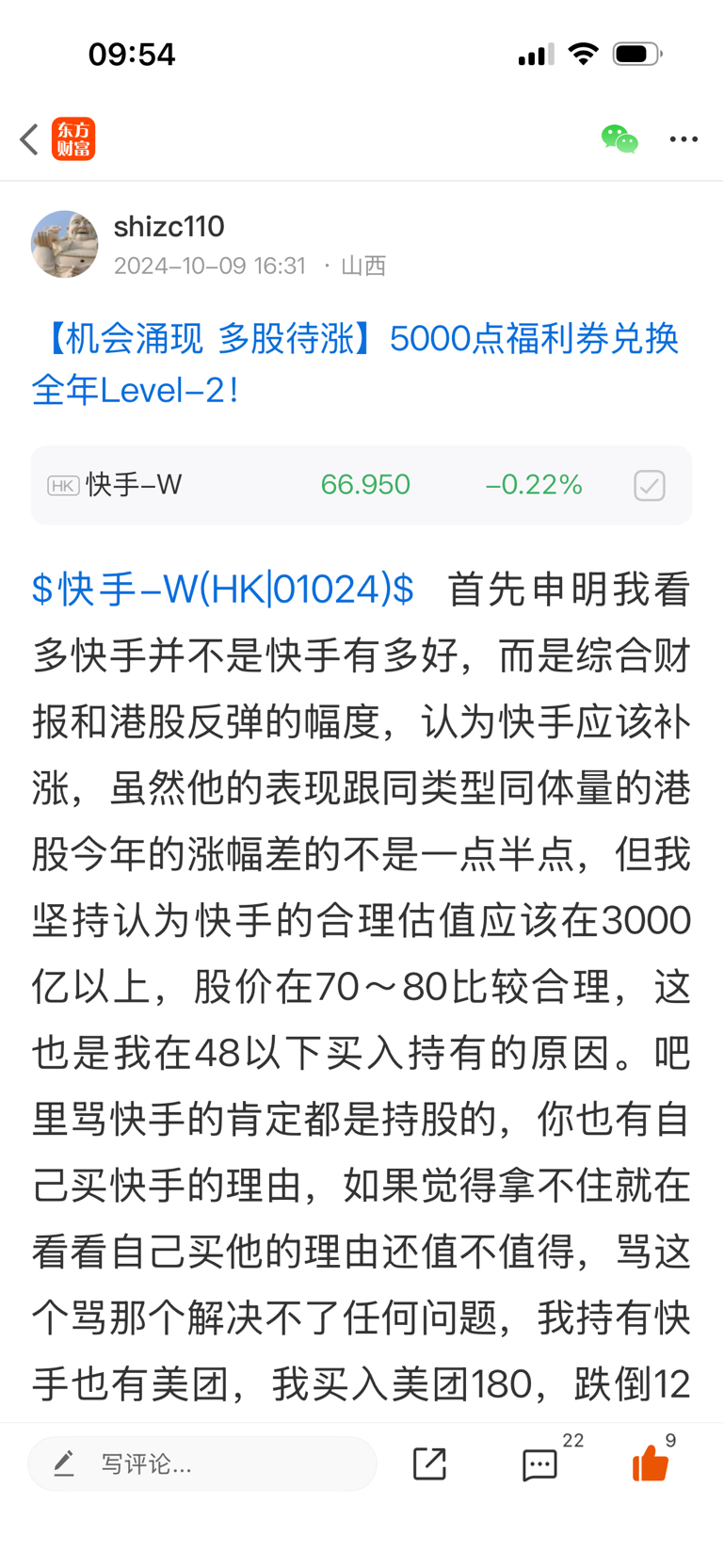 $快手-W(HK|01024)$ 回来看看老朋友还在不在,市值4000亿的时候已经清仓。目前看快手财报没问题但是天花板肉眼可见,吹可灵的早点看清现实,带货也是不温不火,视频号在慢慢发力,估值还会降,贴两张旧图大家参考,也欢迎大家有理有据的分析,毕竟都是来赚钱的,无脑吹无脑黑都没必要#复盘记录#