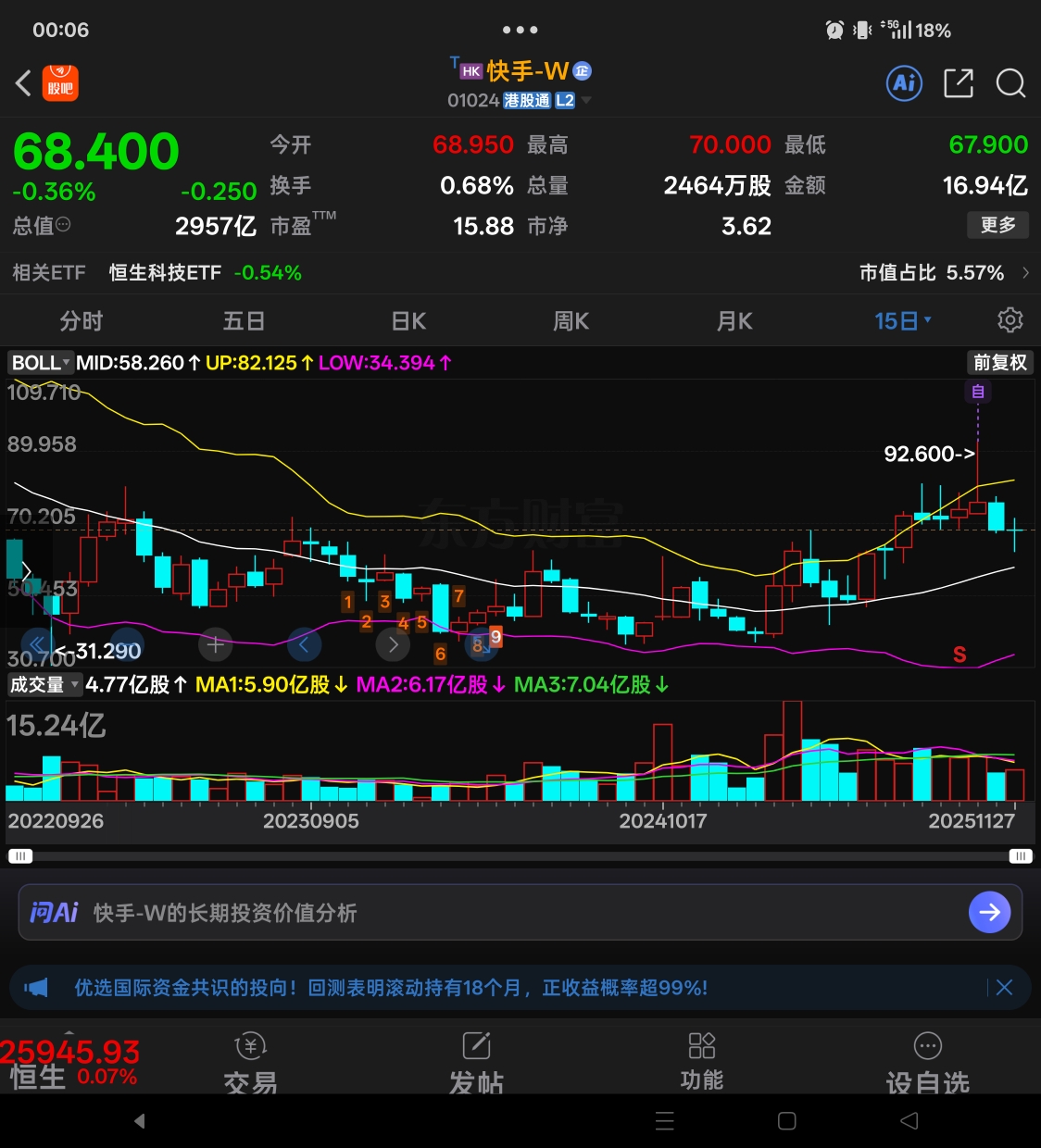 $快手-W(HK|01024)$ 头顶一根大肠针,不死也得伤