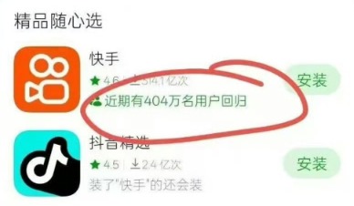 记者还注意到,12月23日,快手App冲到苹果App Store免费榜第二。社交平台有截图显示,快手App累计下载量超314亿次,近期有404万名用户回归。