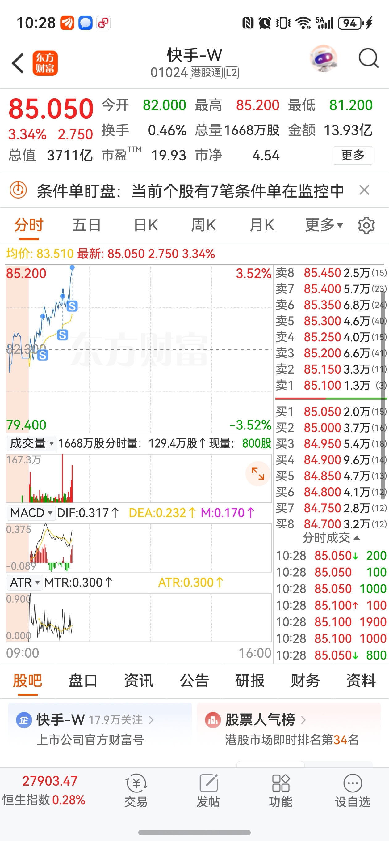 $快手-W(HK|01024)$ 幸亏跑了,75再接。下周就是大跌的时候。