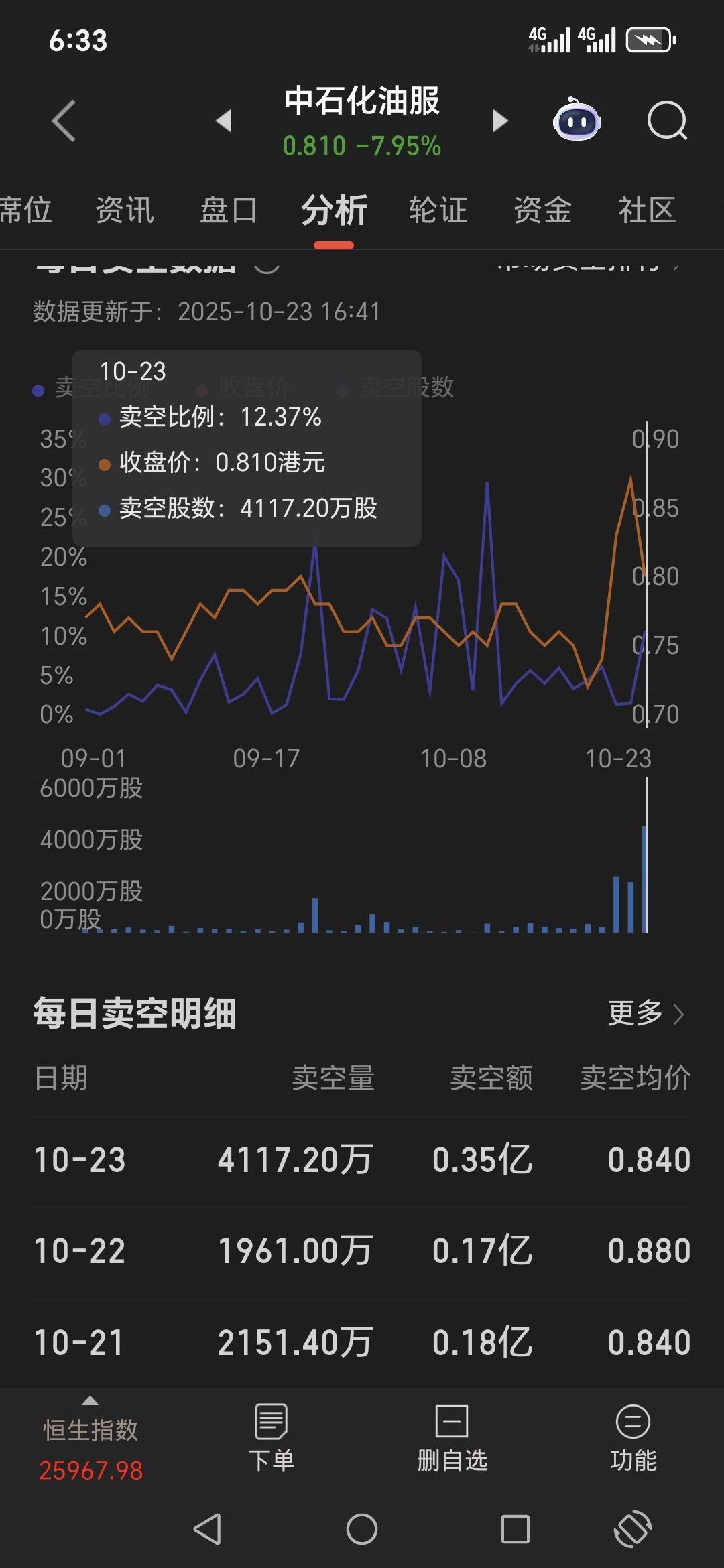 $中石化油服(HK|01033)$ 3亿不到的成交额砸下来8个点!打爆空头兄弟们