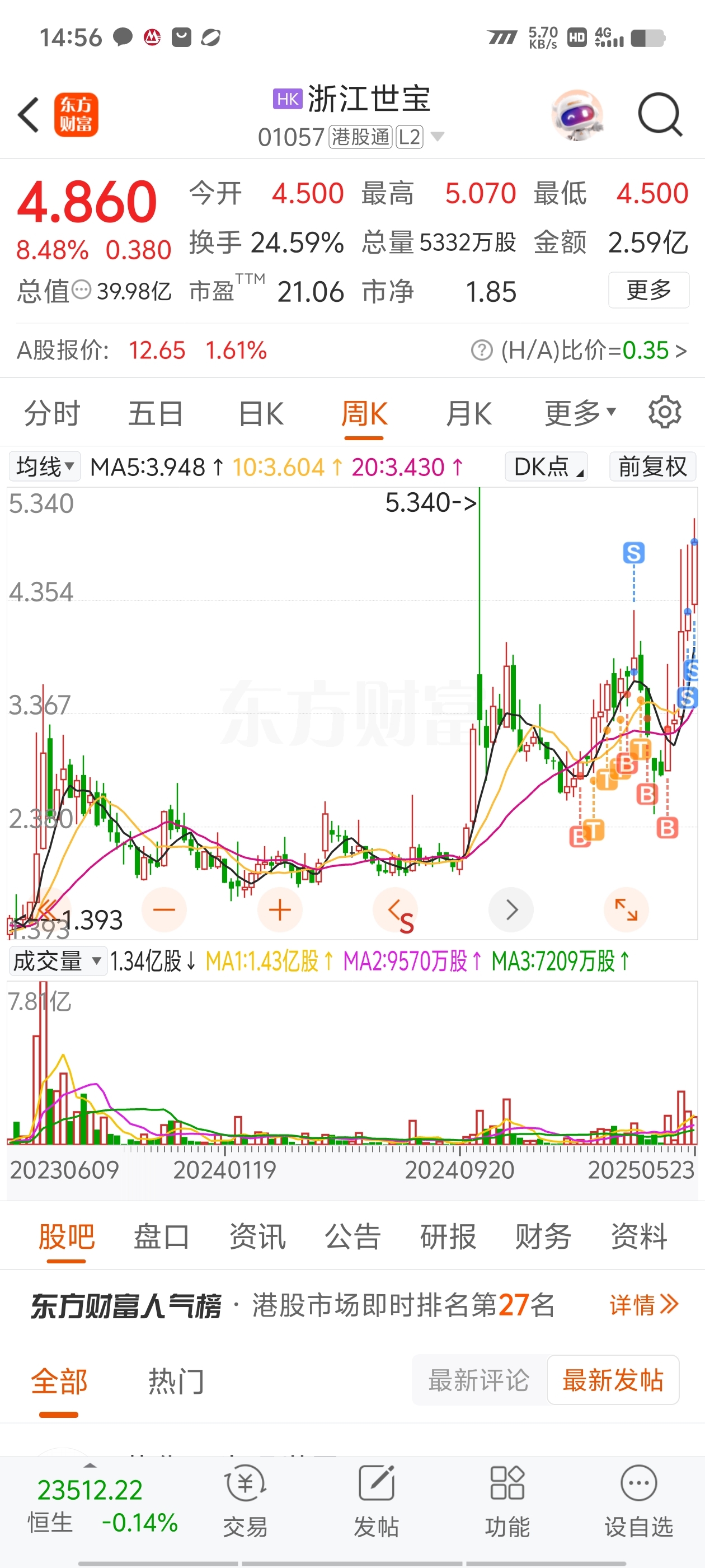 $浙江世宝(HK|01057)$ 祝留下的姐妹们继续发财