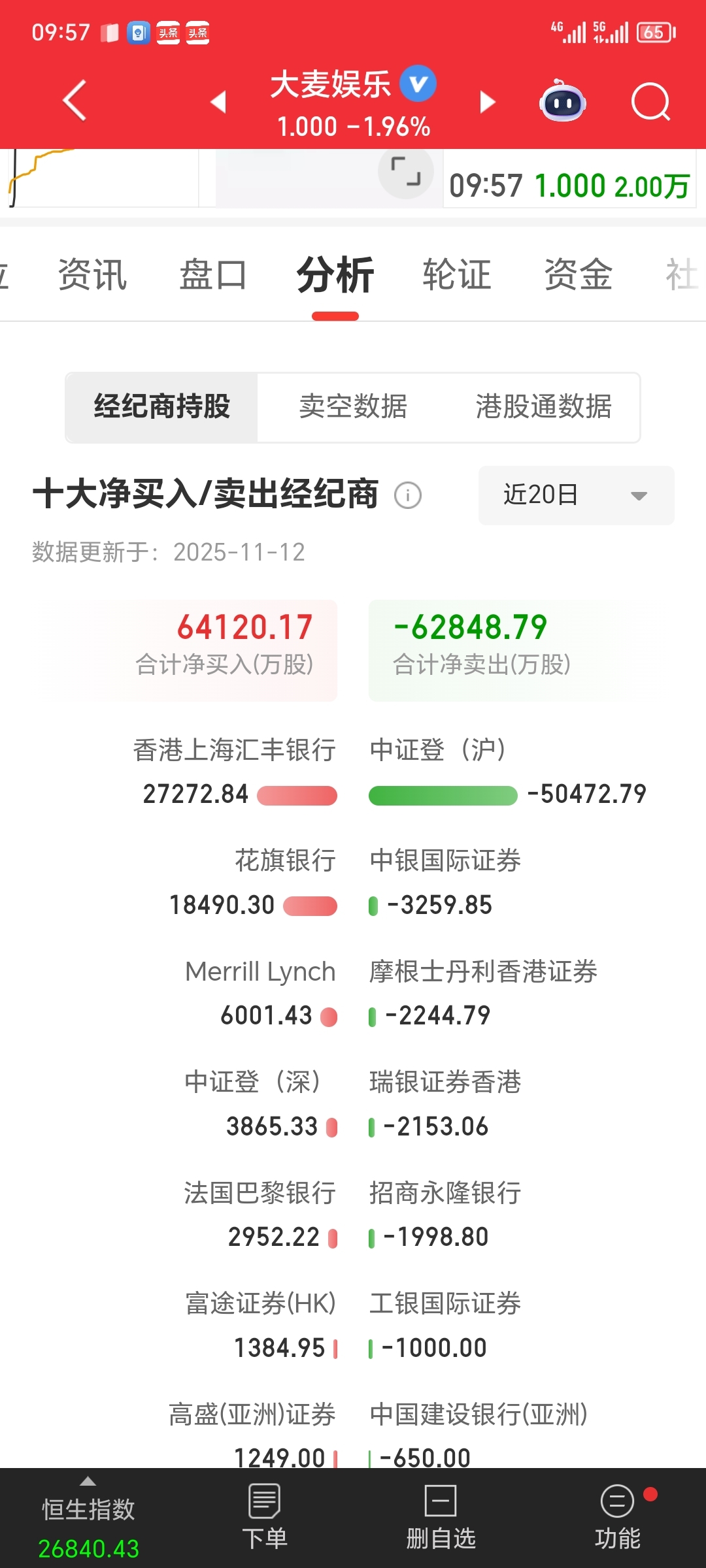 $大麦娱乐(HK|01060)$ 看一下都是谁在买,谁在卖