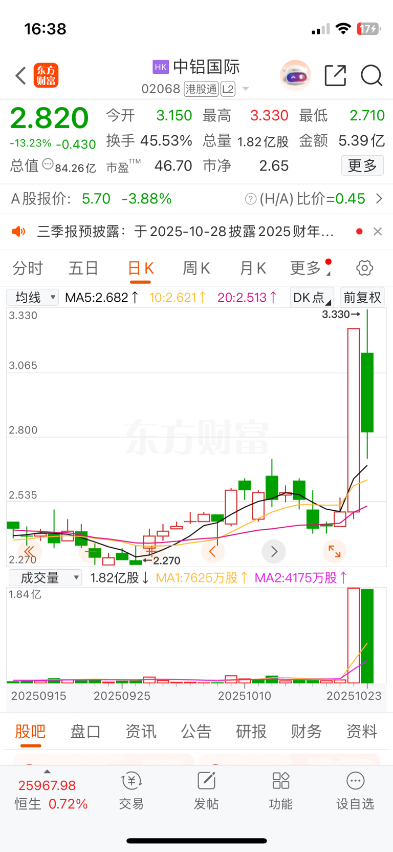 $天津创业环保股份(HK|01065)$ $秦港股份(HK|03369)$ 今天中铝的下场和明天这两货是一样的,都要跌15个点左右