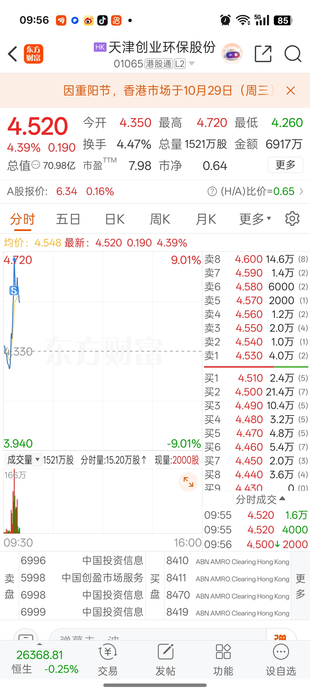 $天津创业环保股份(HK|01065)$ 我走了你们玩