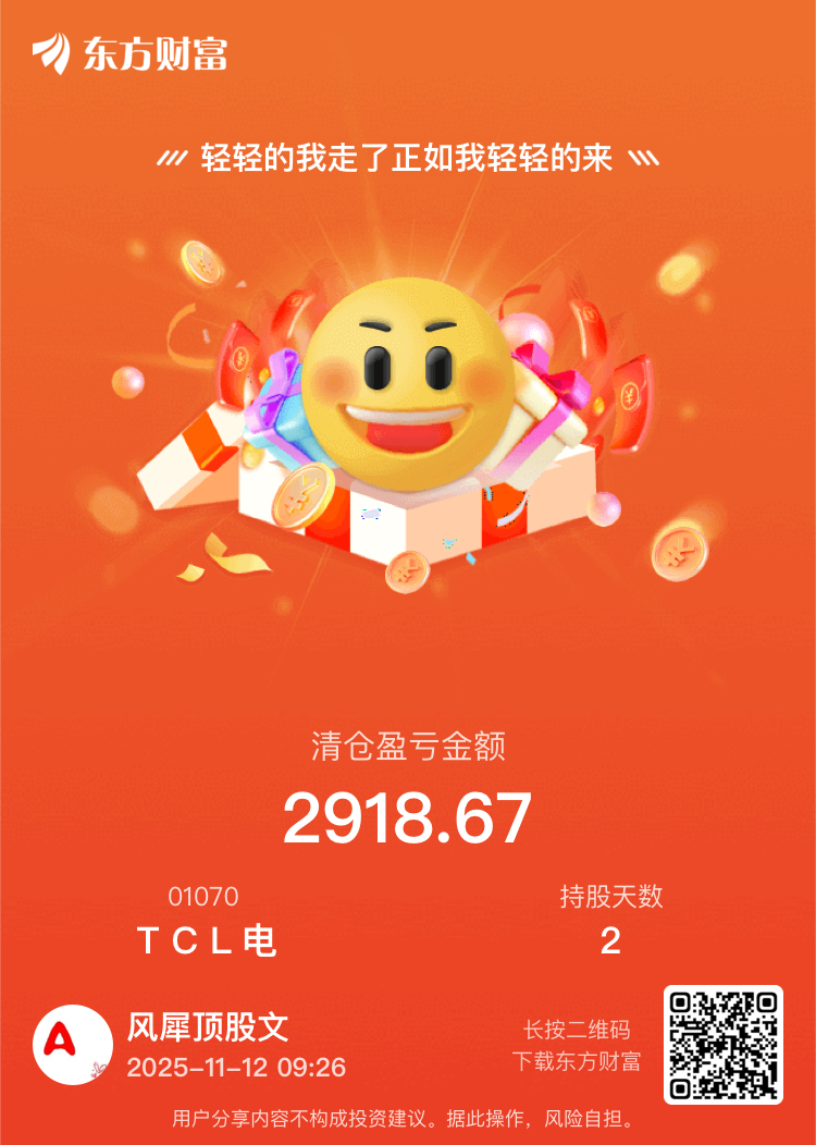 $TCL电子(HK|01070)$ 竞价已经卖出。留下来的发财。