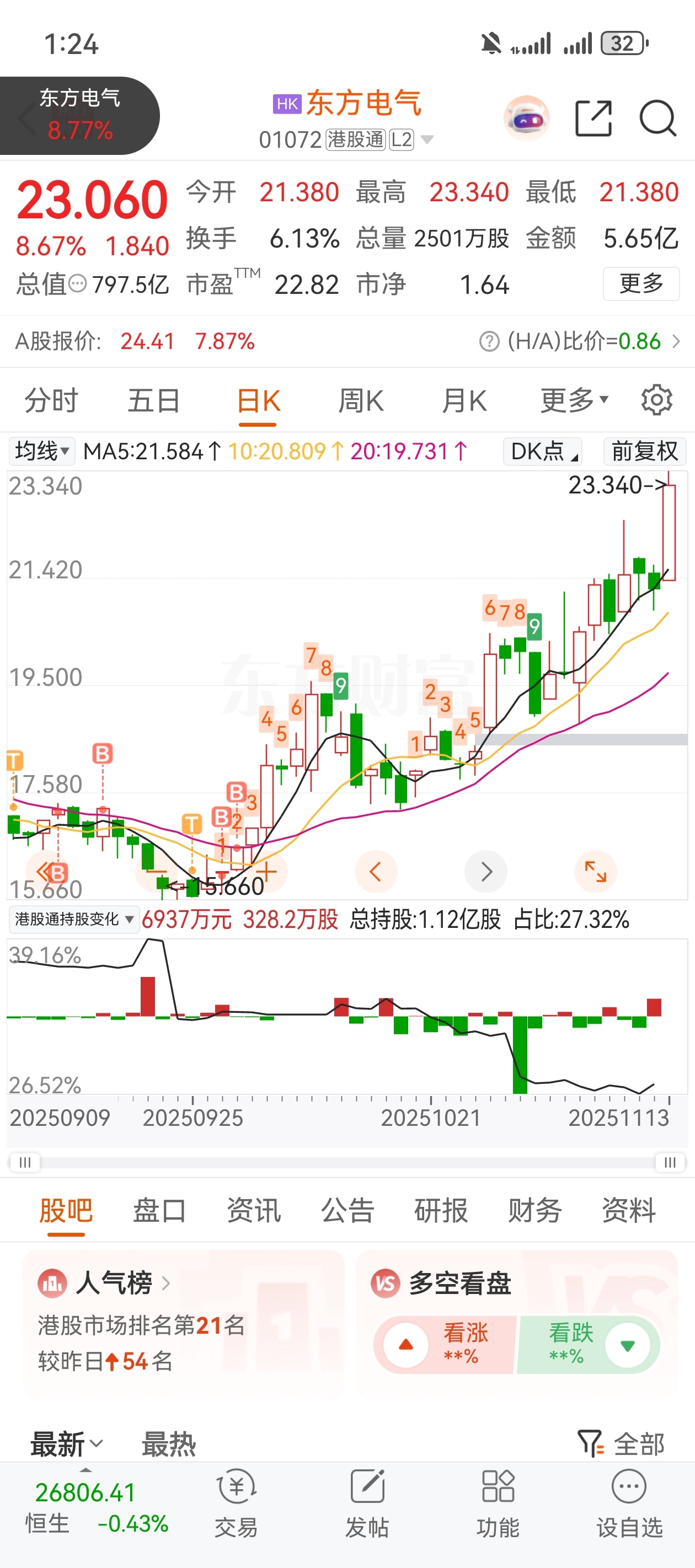 $东方电气(HK|01072)$ 终于回本,几个月了,不容易