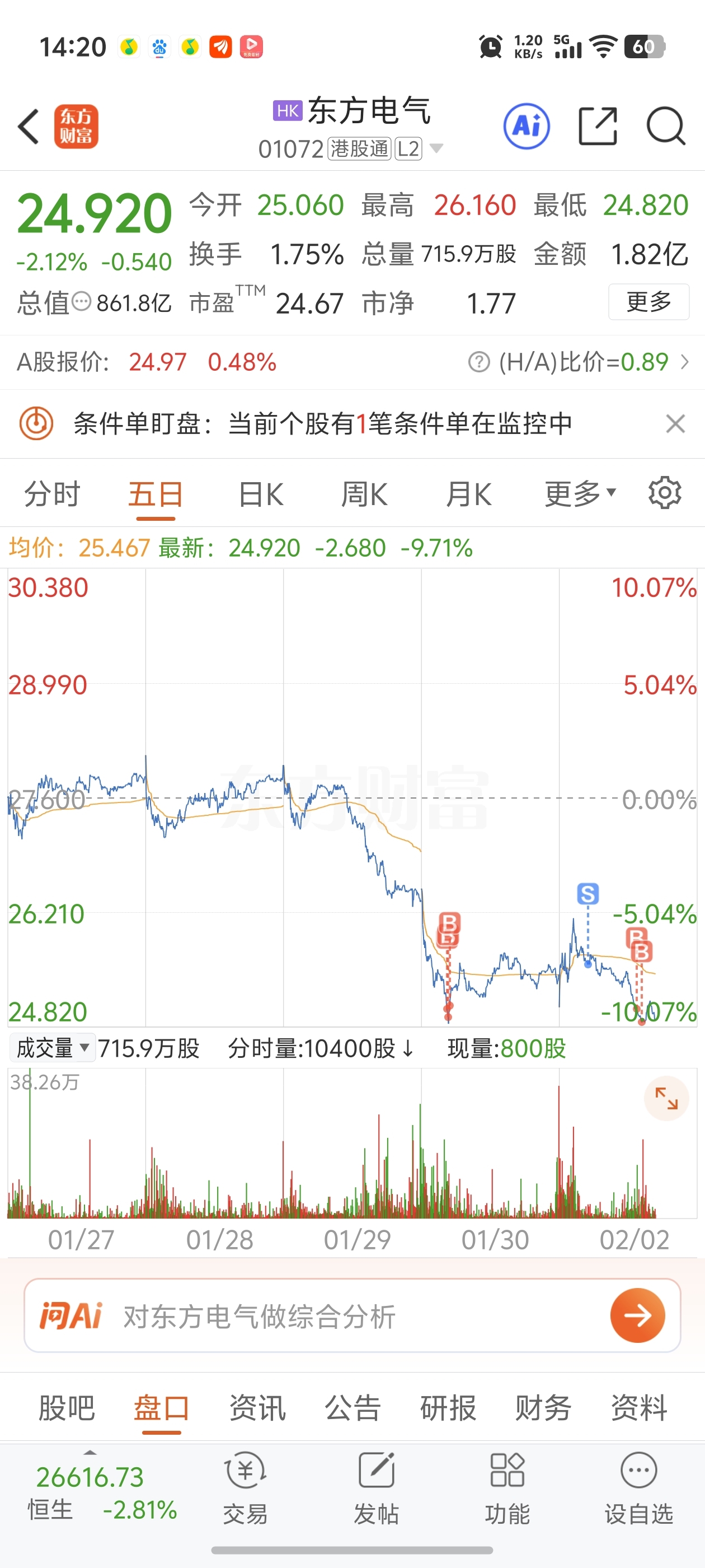 $东方电气(HK|01072)$ 报告,我旅游回来了哈