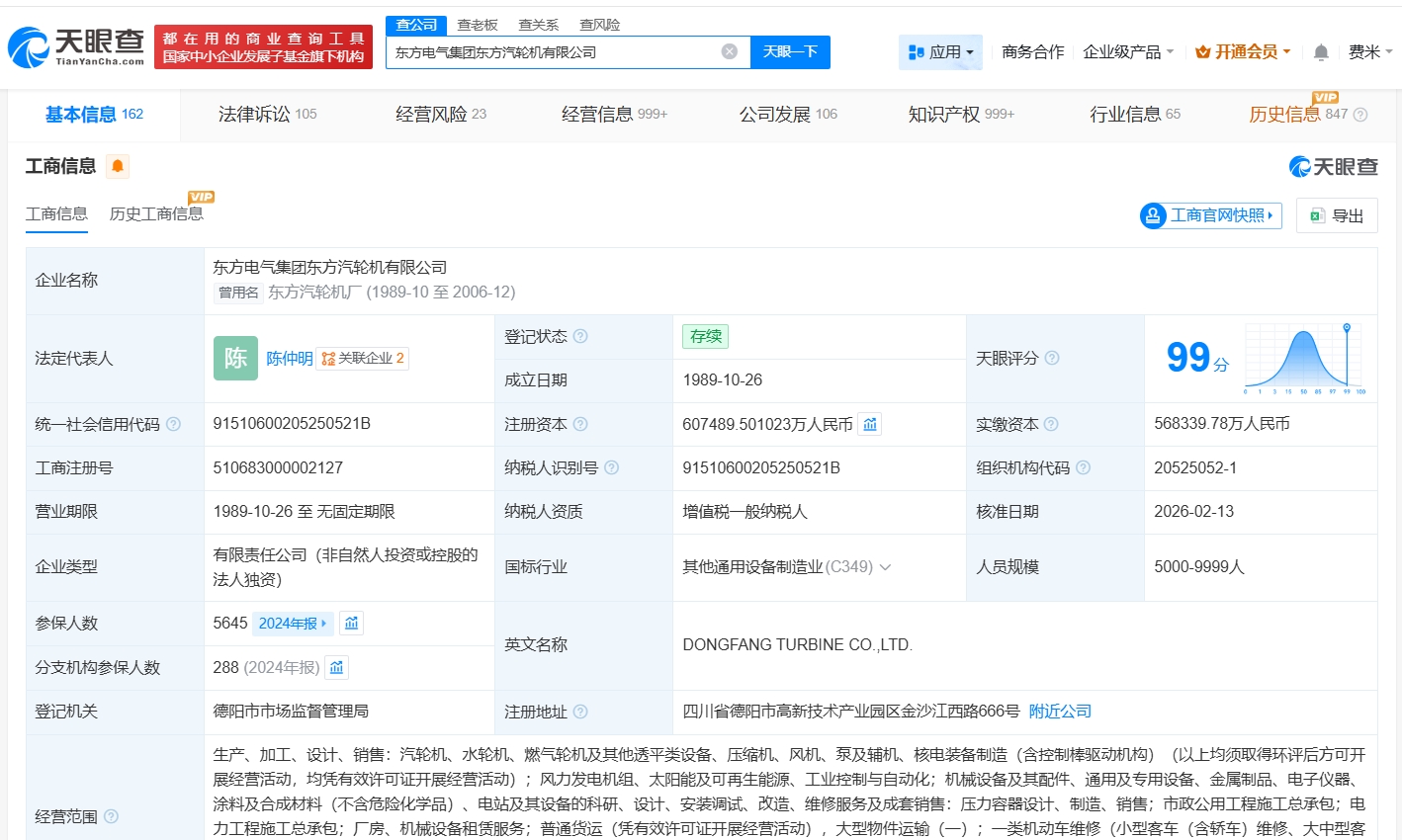 东方电气旗下东方汽轮机公司增资至约60.7亿元