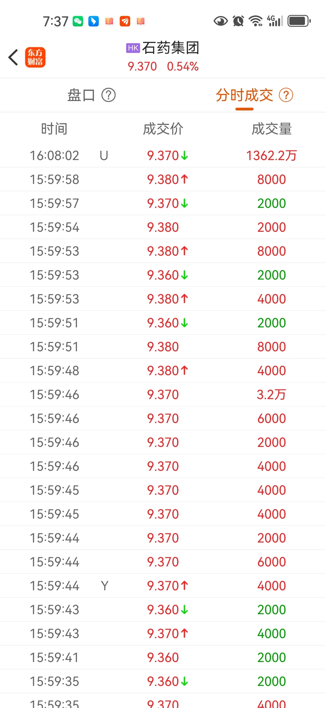 $石药集团(HK|01093)$ 今天尾盘集合竞价有大单,是否说明石药已探底回升,节后要大涨了?