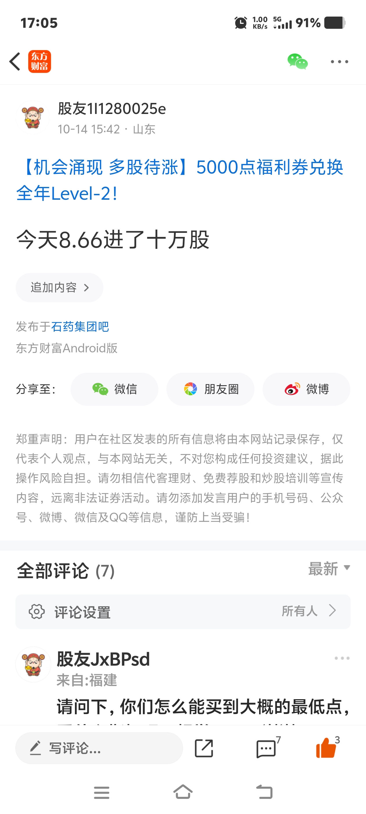 温馨提示: 1.根据《证券法》规定,禁止编造、传播虚假信息或者误导性信息,扰乱证券市场;2.用户在本社区发表的所有资料、言论等仅代表个人观点,与本网站立场无关,不对您构成任何投资建议。用户应基于自己的独立判断,自行决定证券投资并承担相应风险。《东方财富社区管理规定》