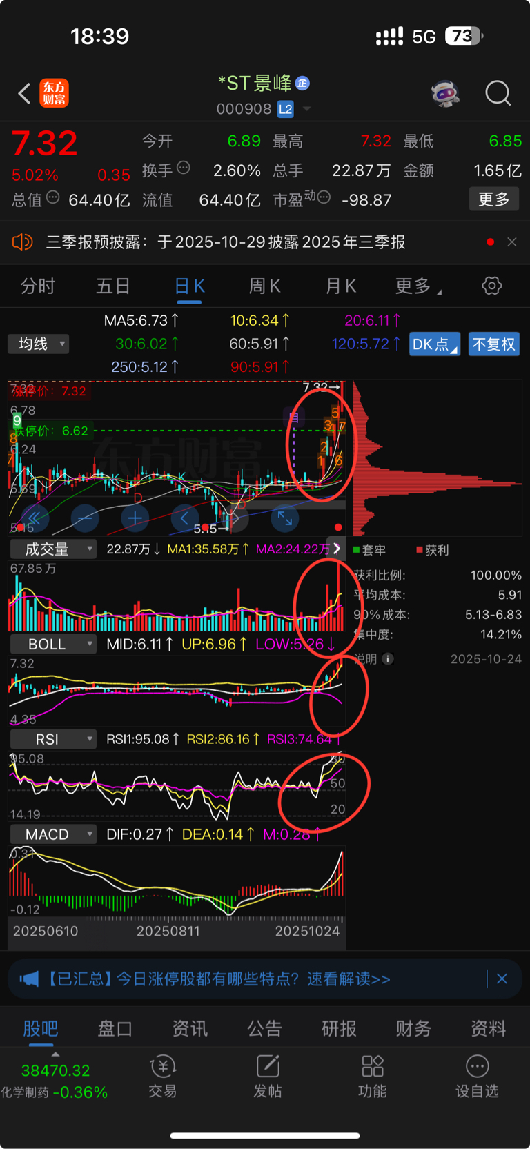 $石药集团(HK|01093)$ 景峰走势与石药完全相反,这种st的票走势都好邪乎,今年还有几只st的每天5个点有个st亚振快10倍了,从景峰目前的走势,技术指标的boll喇叭口开的还挺好,量也不错。