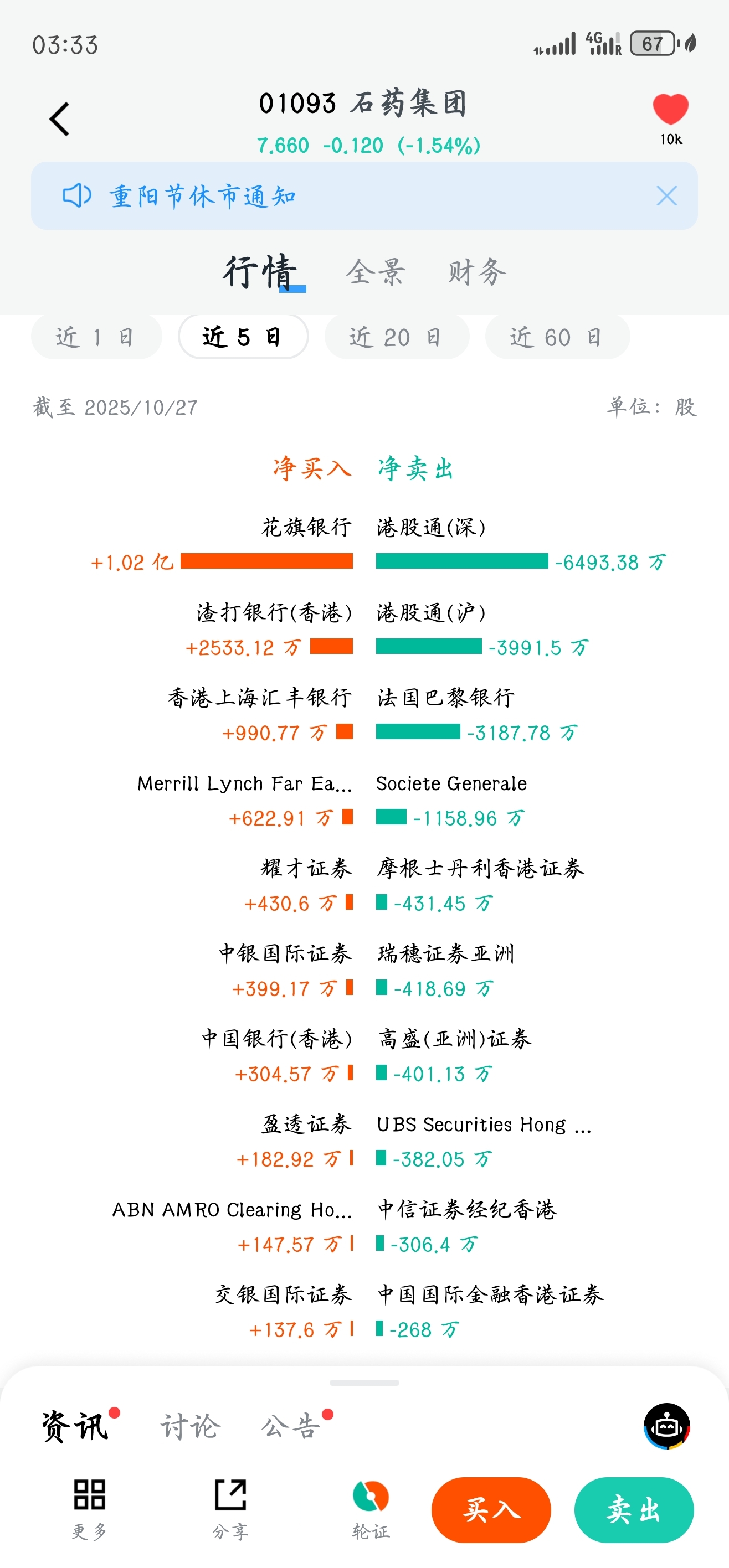 $石药集团(HK|01093)$ 连续5日外资持续买入,空头回补做空仓位。