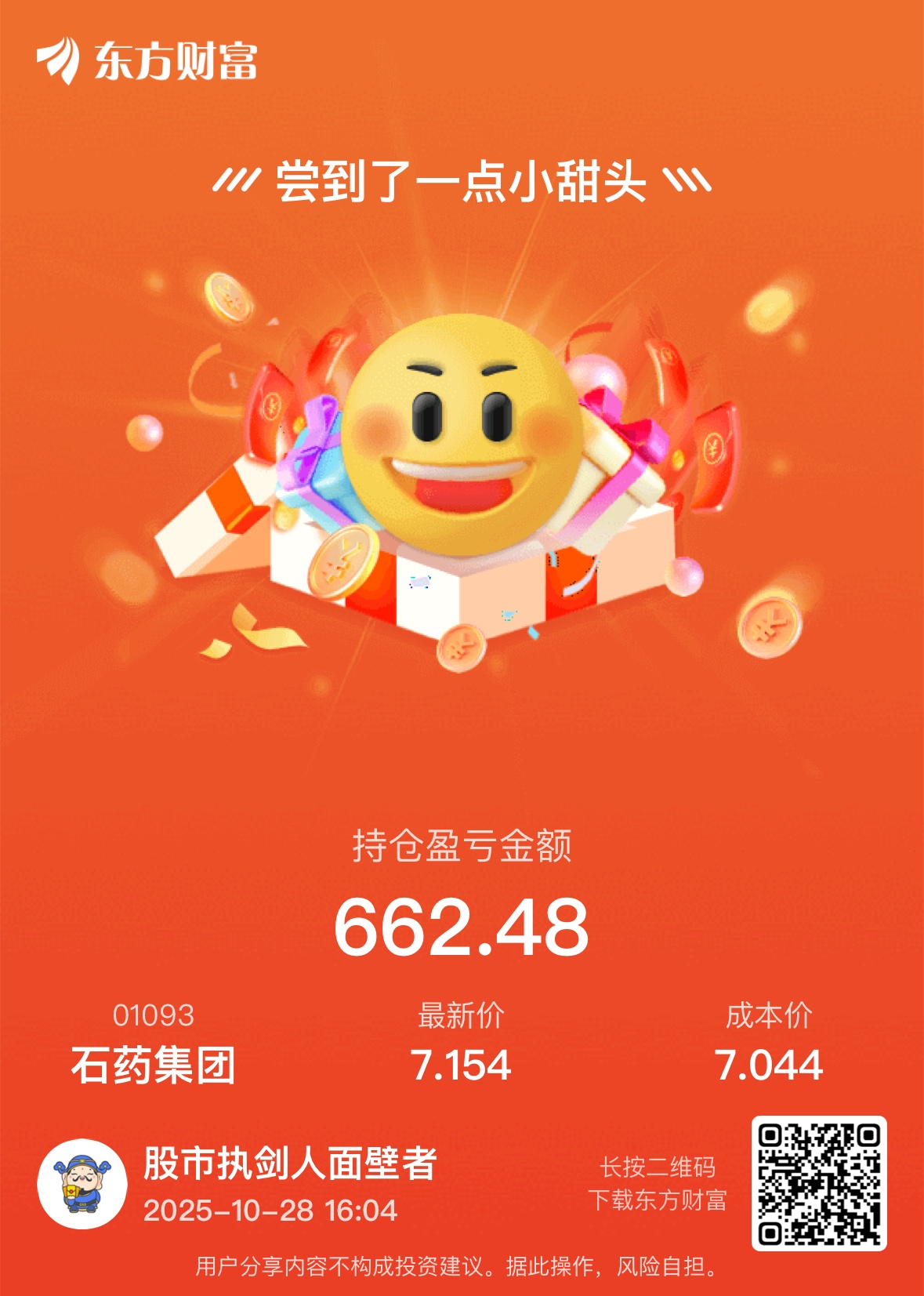 $石药集团(HK|01093)$ 今天介入的,哈哈哈哈,