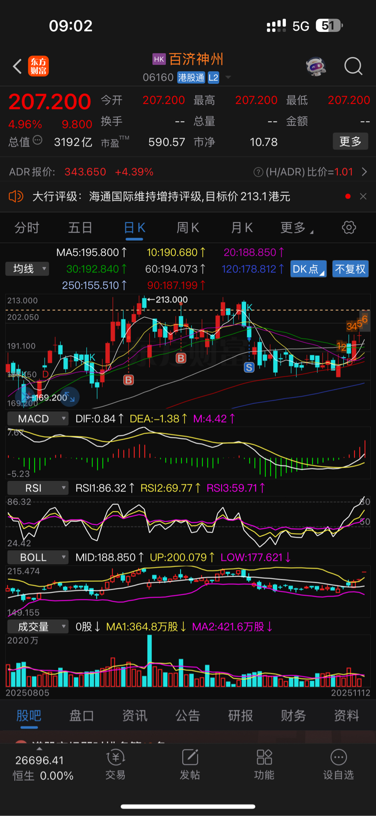 看看自己之前买的百济神州,这段时间的调整按照自己的性格很难拿住,所以有失有得。
