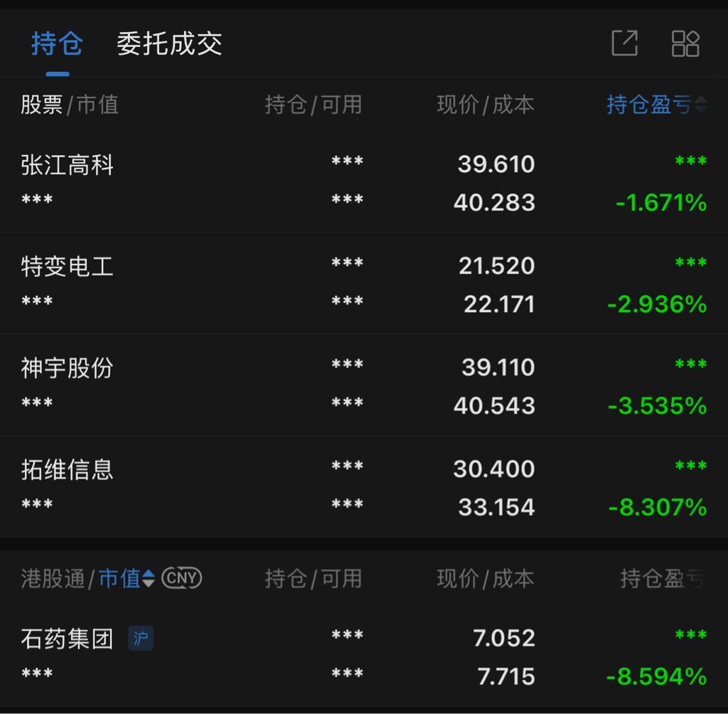很少出现手上票都是绿色的,神宇之前跟石药亏损差不多,接近亏20%,目前也慢慢回来