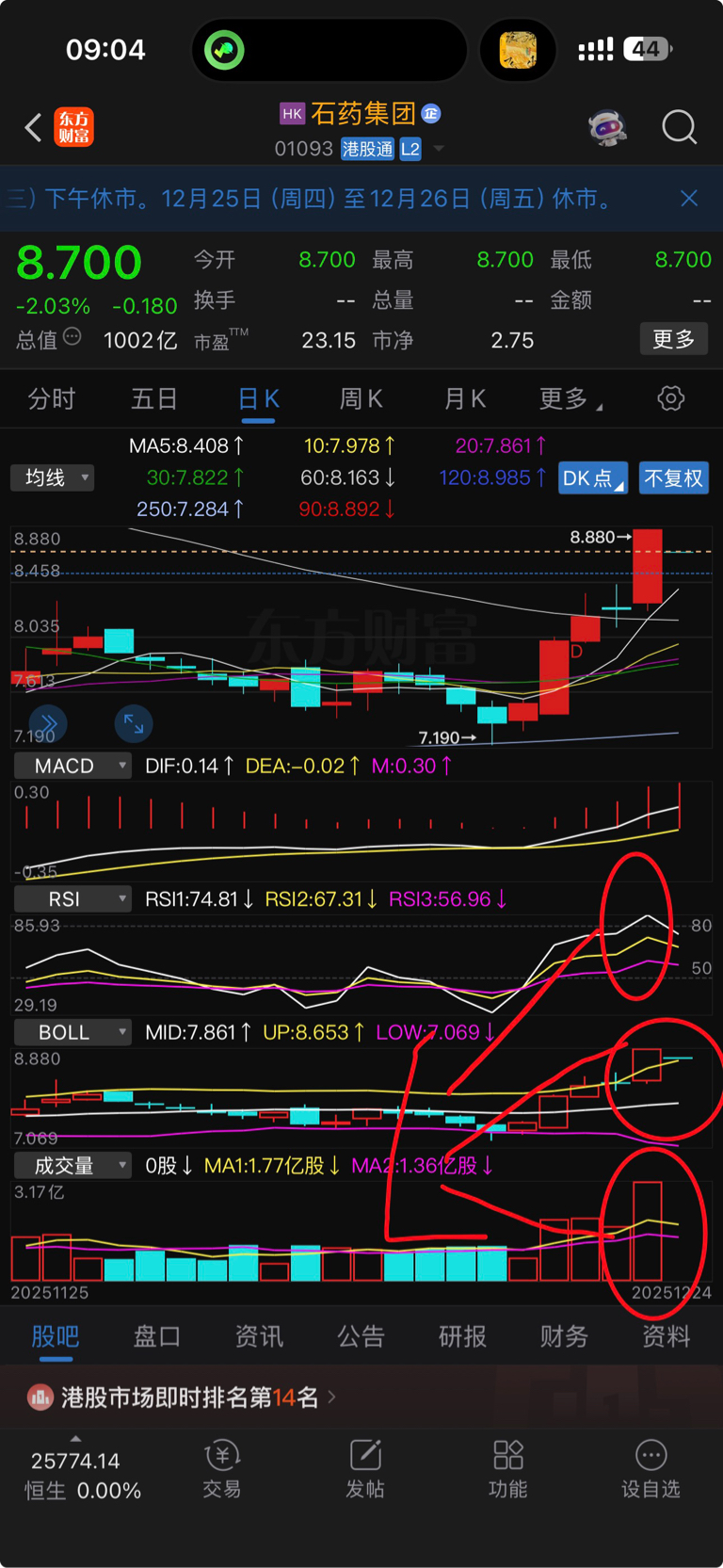$石药集团(HK|01093)$ 昨天短期进入超买区域,今天看来会比较精彩。