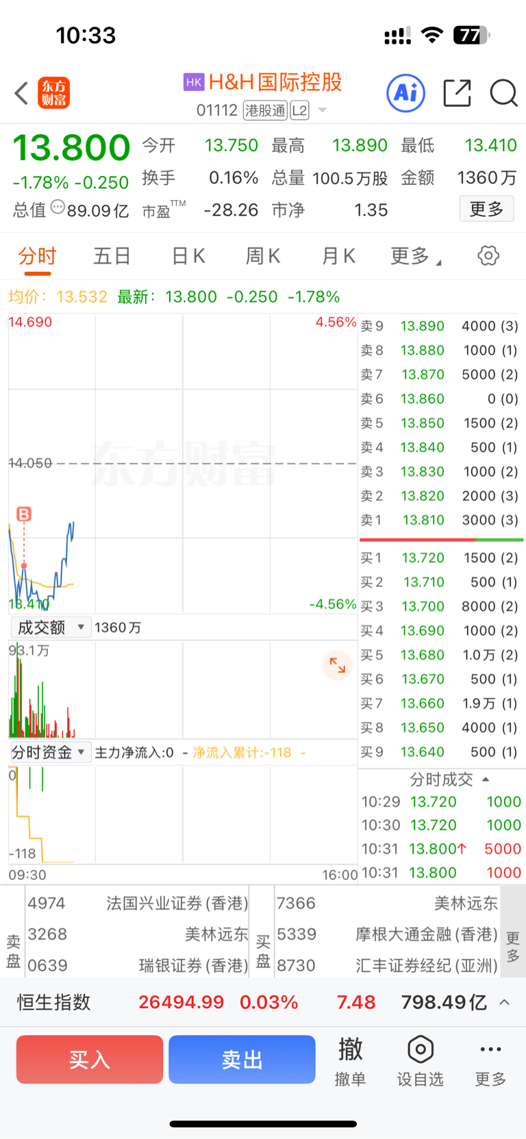 $H&H国际控股(HK|01112)$ 恶庄?买一手陪你退市!