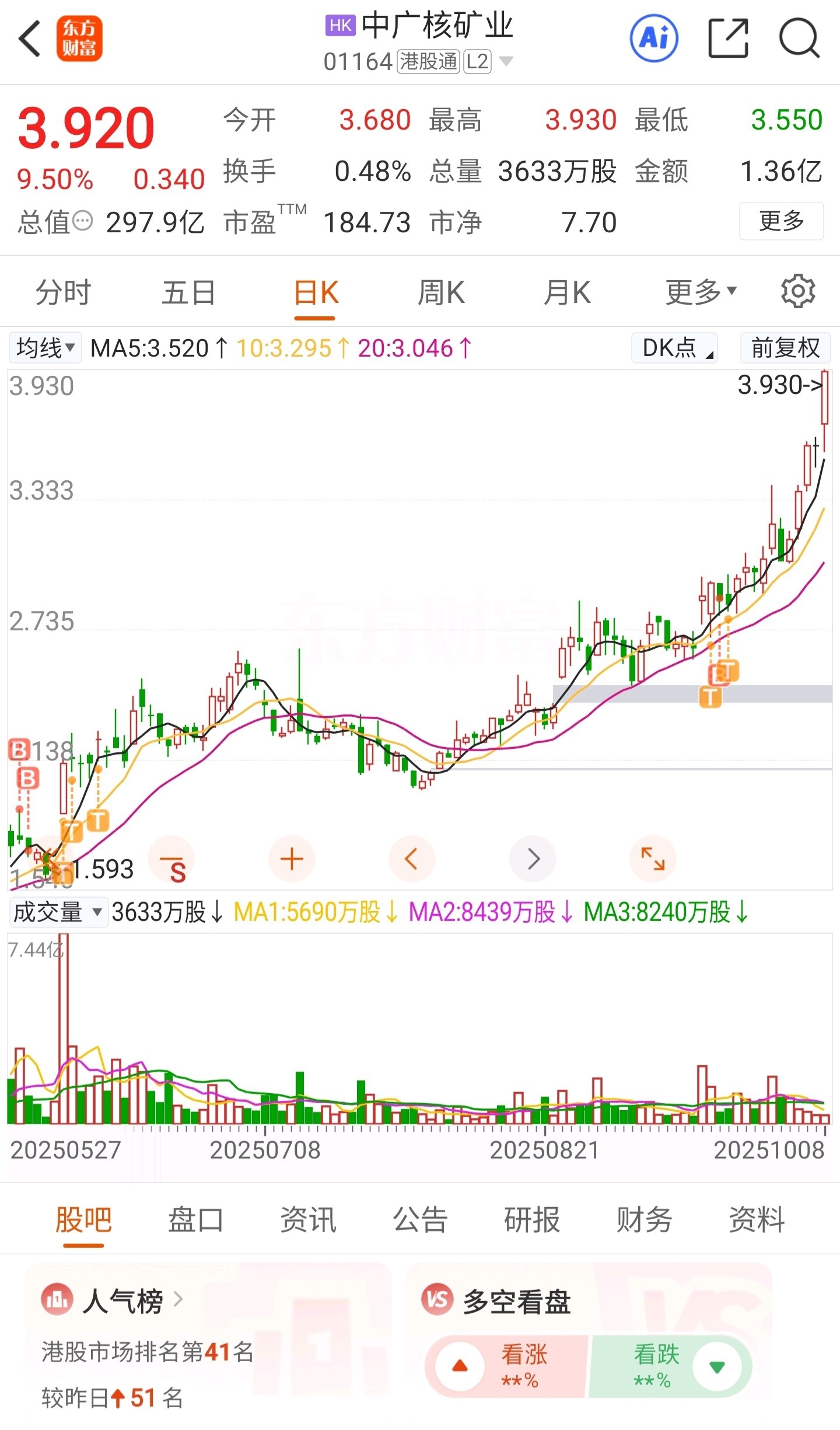 $中广核矿业(HK|01164)$ 曾经1块多的时候瞧不起,如今直上银河去!长期投资的重要性。。。