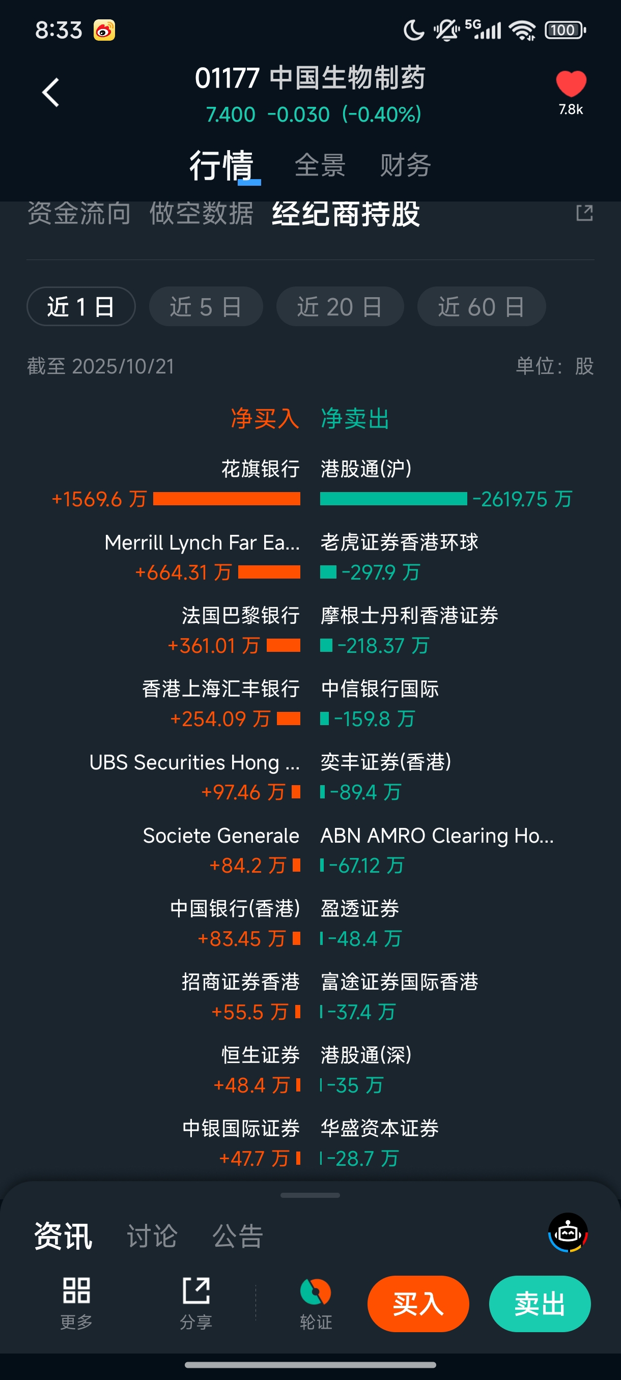 $中国生物制药(HK|01177)$ 港股通小散天天砸盘怪主力不拉 哈哈哈