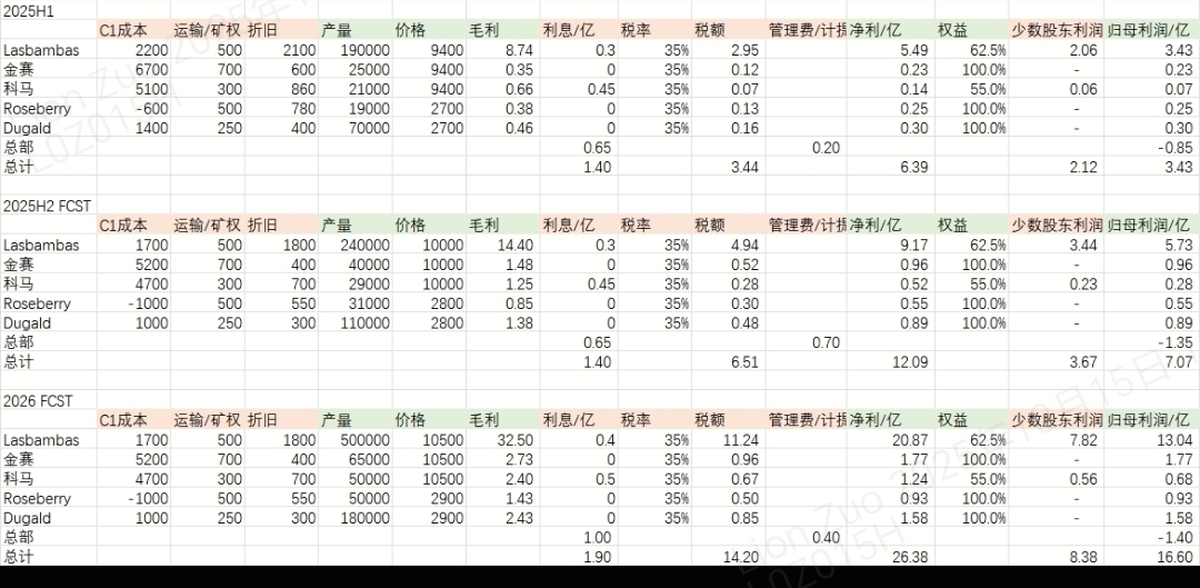预计25下半年7亿刀利润,26年16亿刀。前提是铜/锌价格温和上涨,无矿难,无社