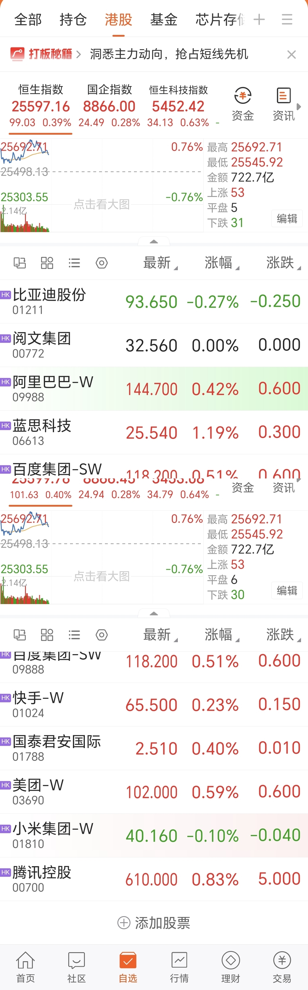$比亚迪股份(HK|01211)$ 我的港股自选股里面就两只股跌,一个你一个小米,你们两个难兄难弟的走势还出奇的一致