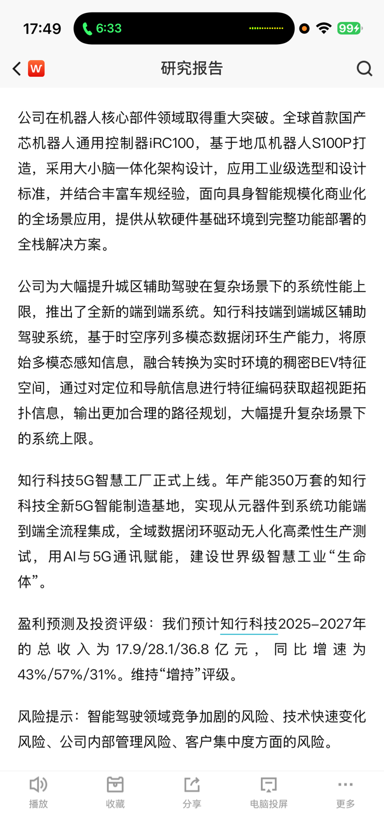 $知行科技(HK|01274)$ 蛮离谱的,西部还算是靠谱的券商,这种情况下真的只能说公司管理问题太大了,上半年3亿,下半年15亿...这差的也太多了,目前20亿的市值,也就1倍ps了,全世界唯一1倍psAI自动驾驶和机器人...