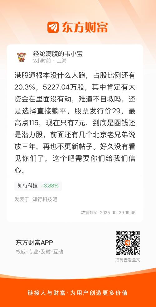 港股通根本没什么人跑,占股比例还有20.3%,5227.04万股,其中肯定有大资金在里面没有动,难道不自救吗,还是选择直接躺平,股票发行价29,最高点115,现在只有7元,到底是圈钱还是潜力股,前面还有几个北京老兄弟说放三年,再也不更新帖子。好久没有看见你们了,这个吧需要你们给我们信心。