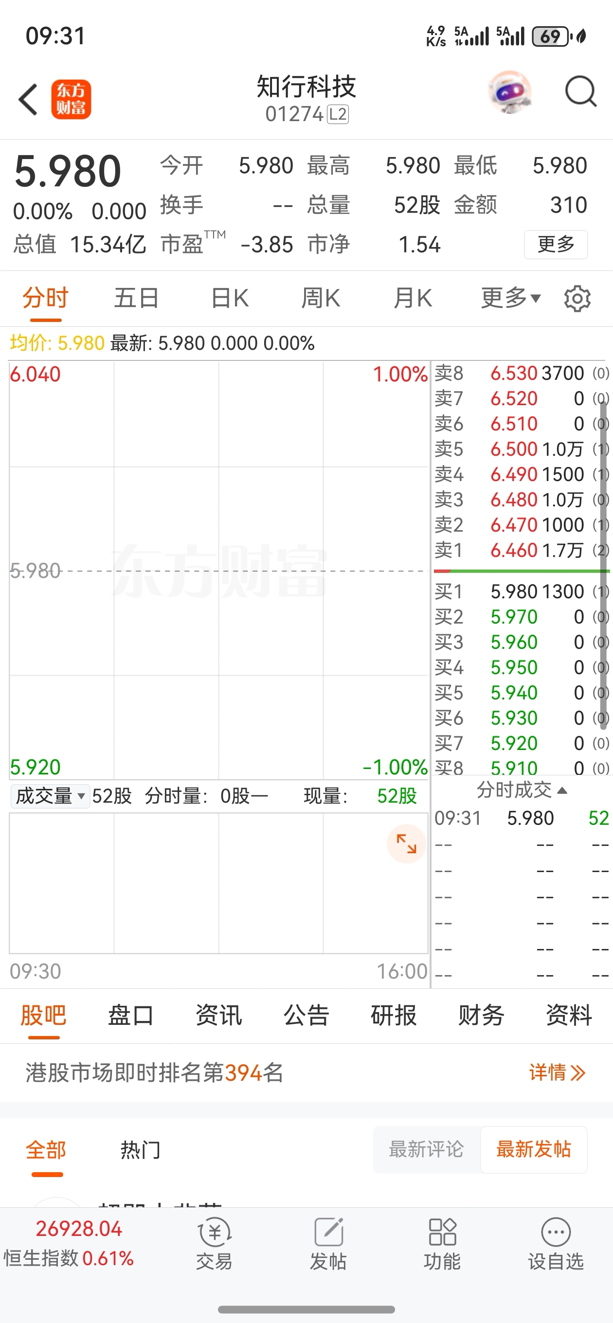 $知行科技(HK|01274)$ 那位大侠剩下 52 股还卖,开盘只成交啦 310 元,天大的笑话啊。