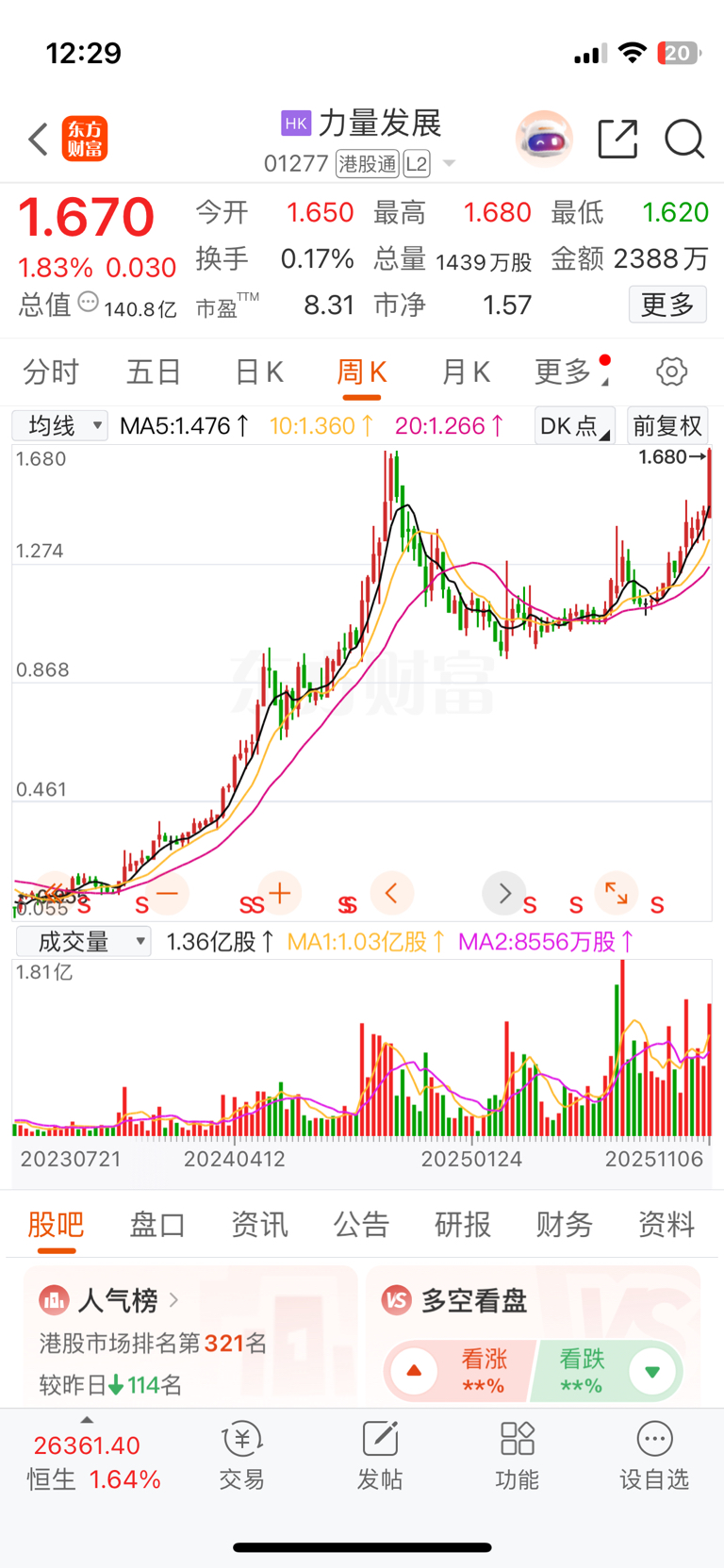 $力量发展(HK|01277)$ 这货已经到顶,随时有可能瀑布杀,一天跌回解放前