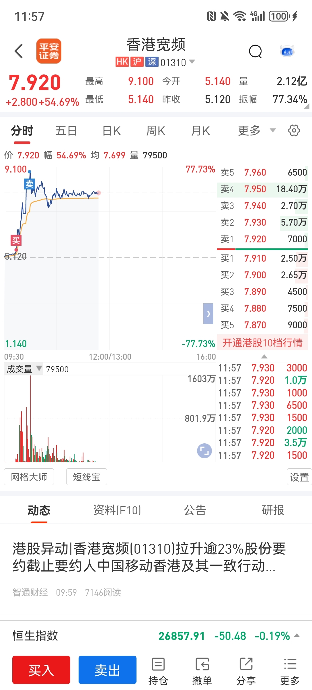 $香港宽频(HK|01310)$ 今天80点多快乐,当时大仓位在其他票,也在拉升。满仓这支直接回本了