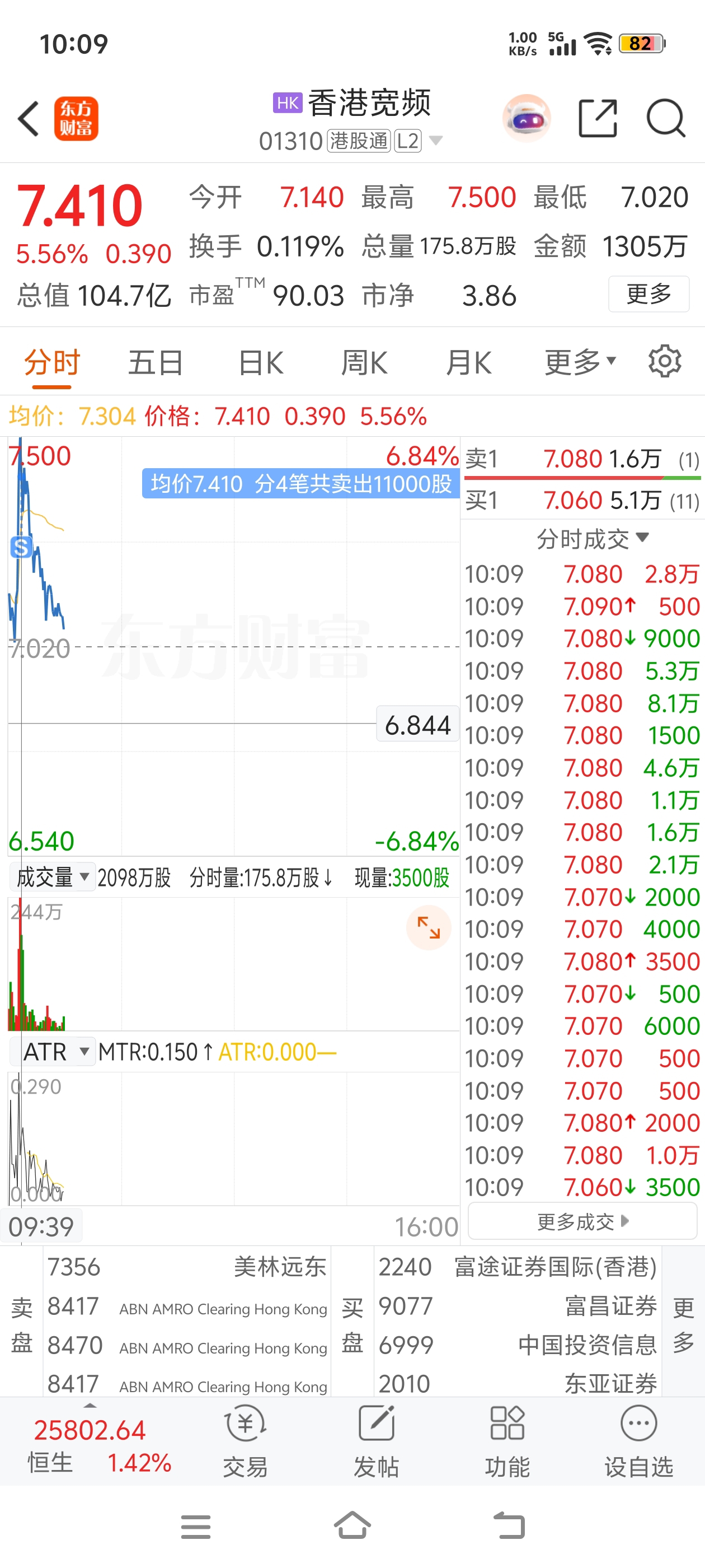 $香港宽频(HK|01310)$ 还好7.41跑了昨天尾盘进的,不然怎么死都不知道