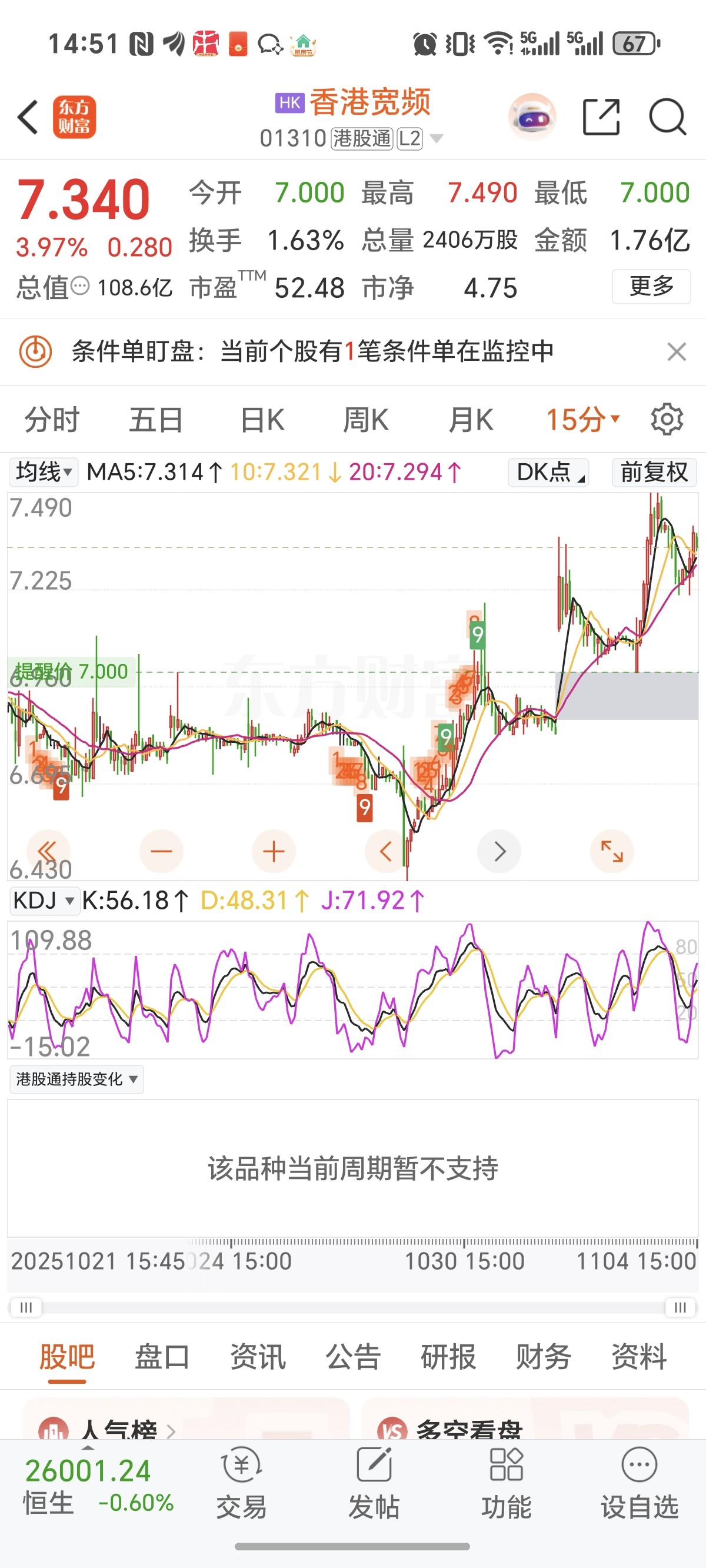 15钟走势震荡走强,慢牛格局