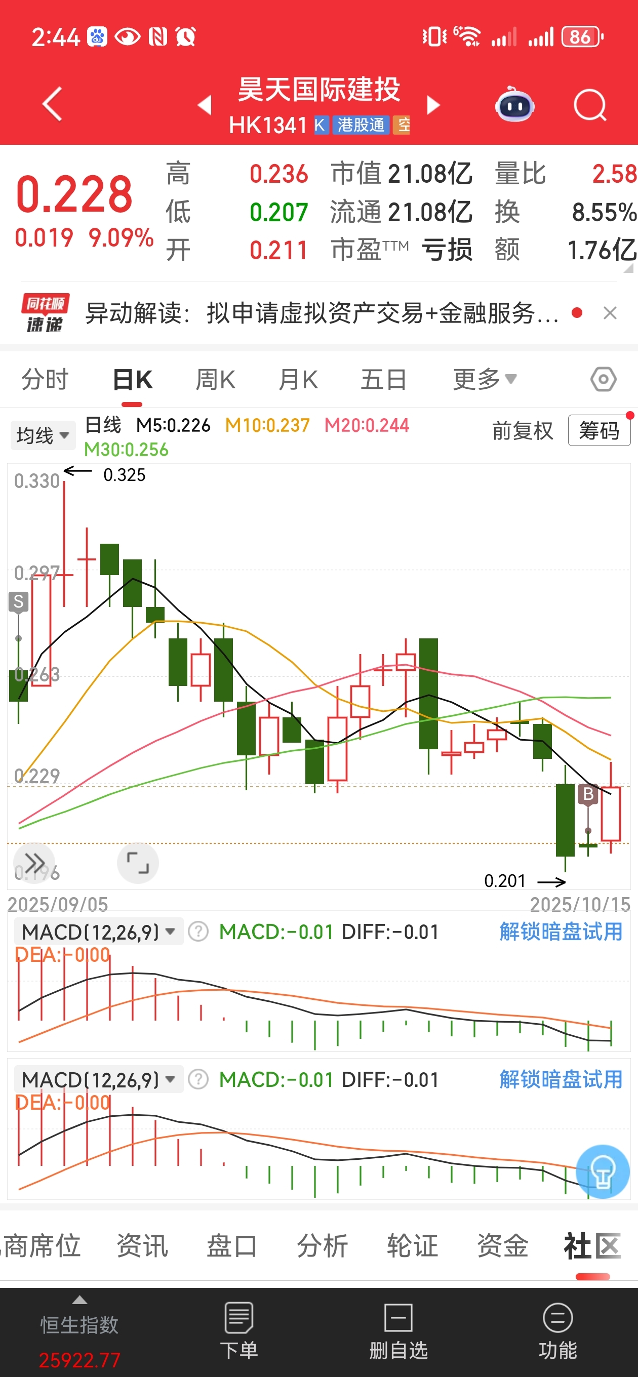 $昊天国际建投(HK|01341)$ 昨天精准加仓660万股,谢谢,明天计划出货