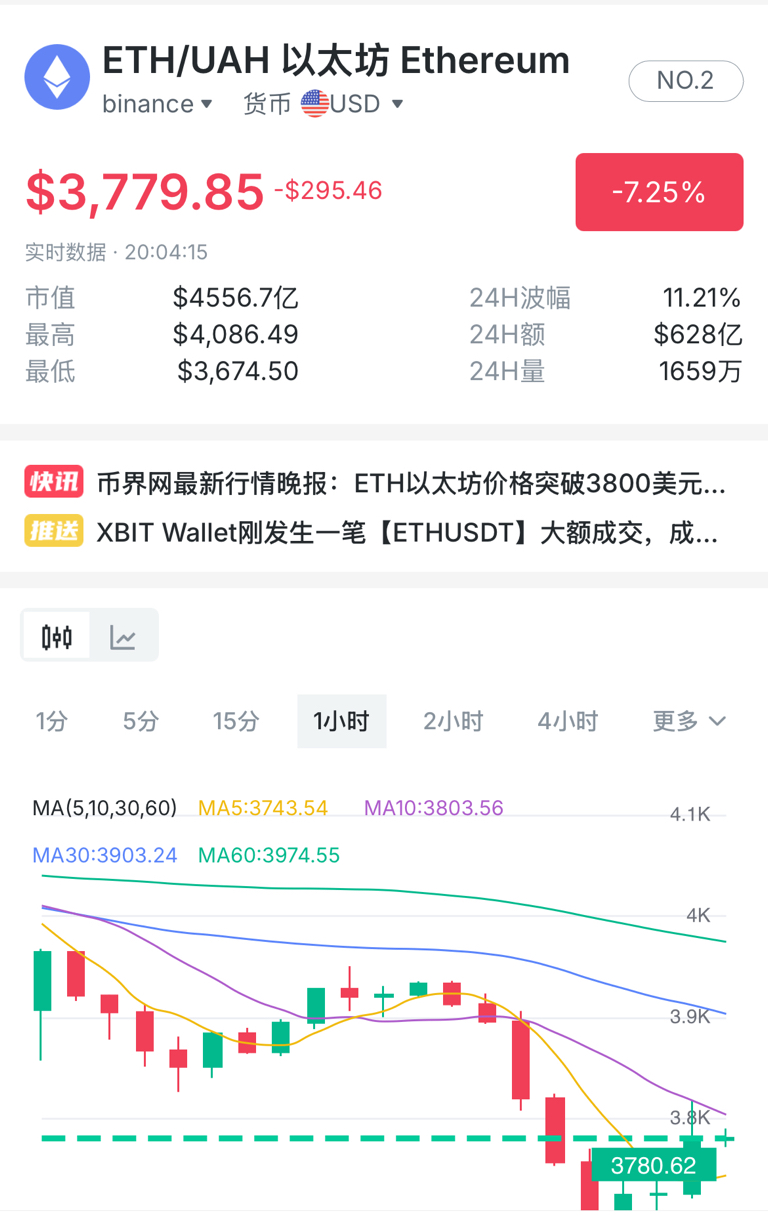 $昊天国际建投(HK|01341)$ 以太坊大跌,幸好昊天没买以太坊