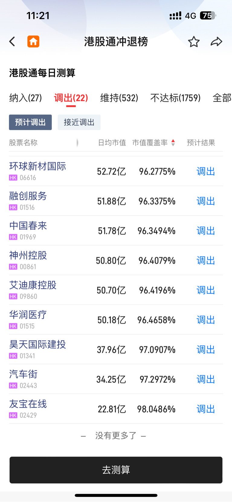 港股调出冲退板位列倒数第三