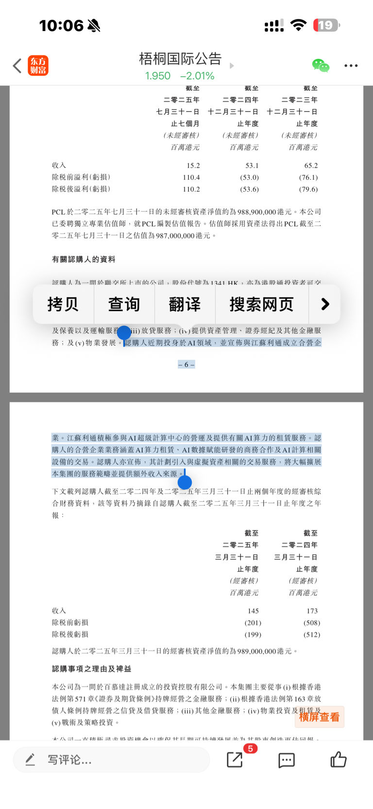 $昊天国际建投(HK|01341)$ 梧桐pcl收购那边也发了,说明和利通的算力在推进中,官方公开文件,没什么质疑的了吧