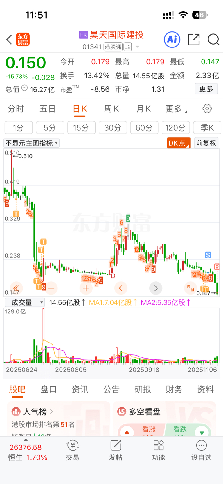 $昊天国际建投(HK|01341)$ 我每次买都能赚钱 这次 148买能赚钱吗