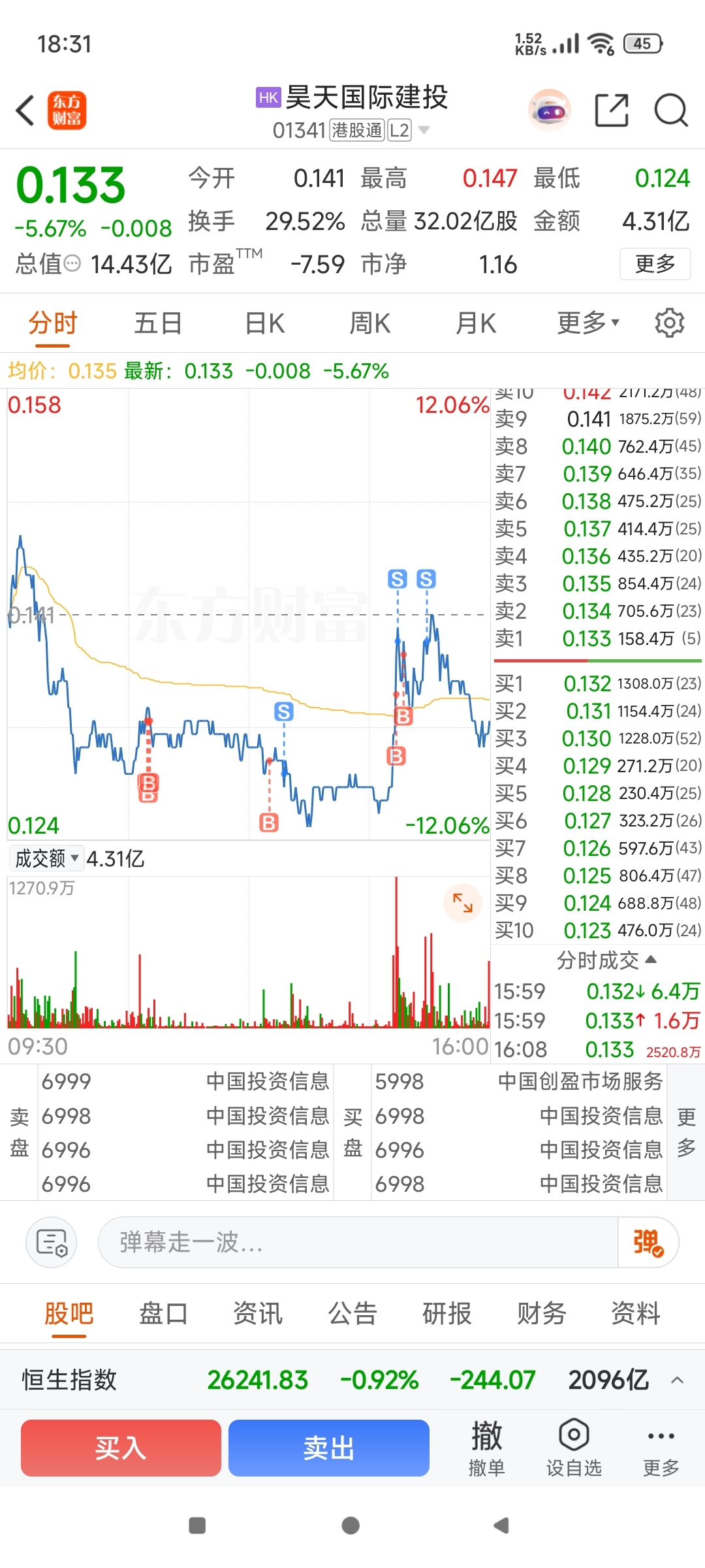 $昊天国际建投(HK|01341)$ 今天跟着毛驴老师买了昊天,一天下来微微赚,胆子还是太小了。下周一干哪一只超跌股?@毛驴老师