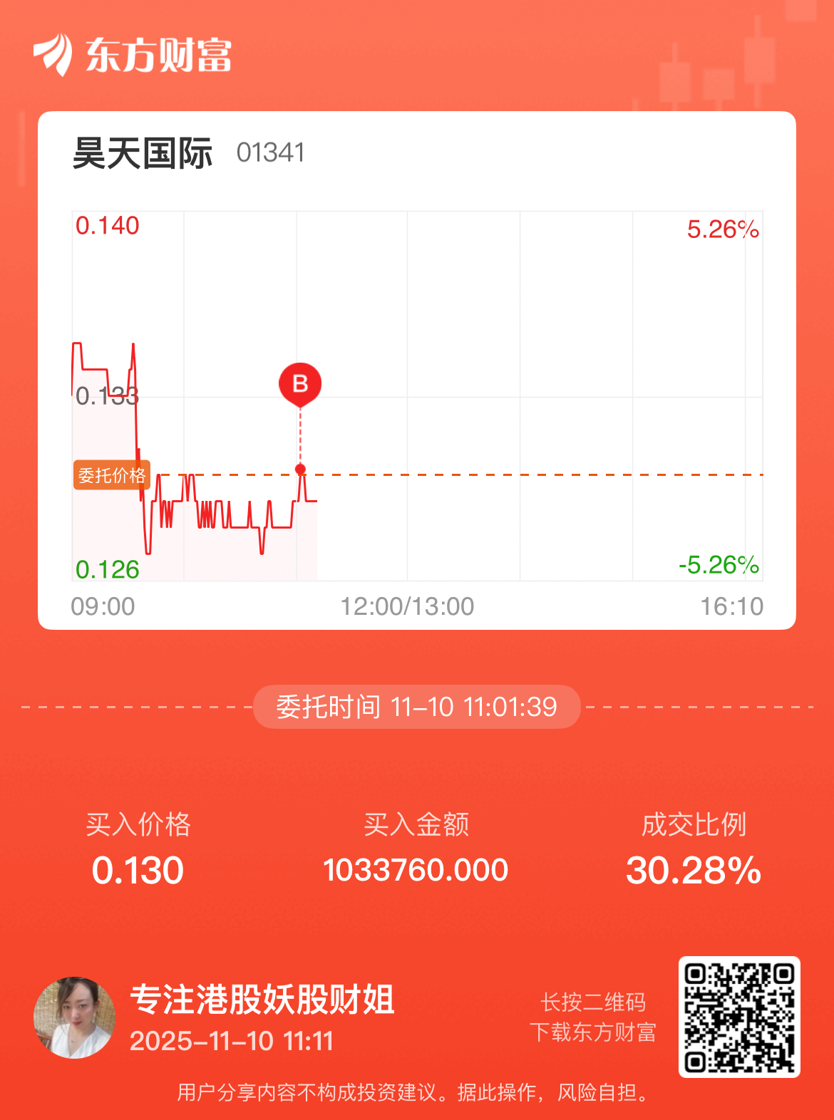 $昊天国际建投(HK|01341)$ 财姐是不是主力?