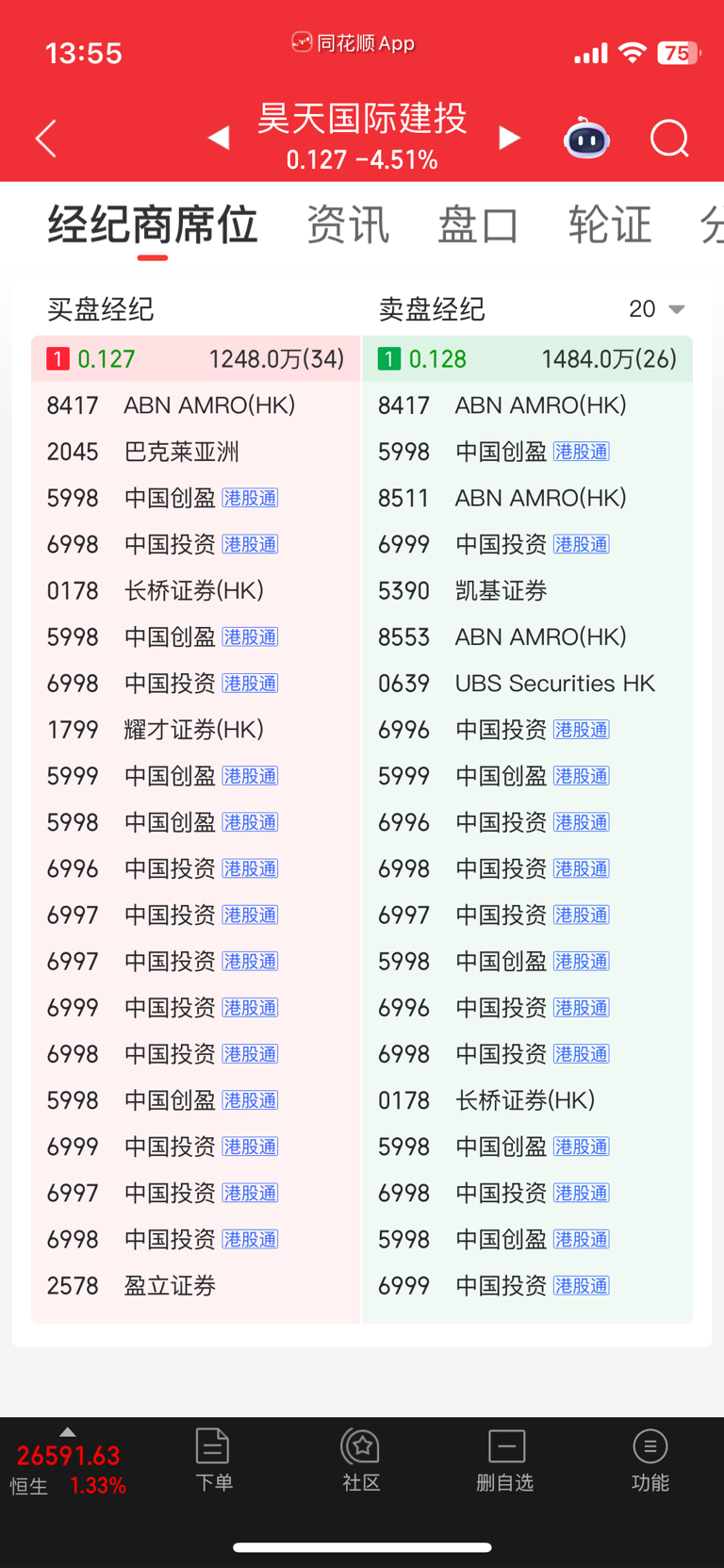 $昊天国际建投(HK|01341)$ 拉和砸取决于里面韭菜的数量,恶庄知道韭菜还有很多,所以继续砸盘