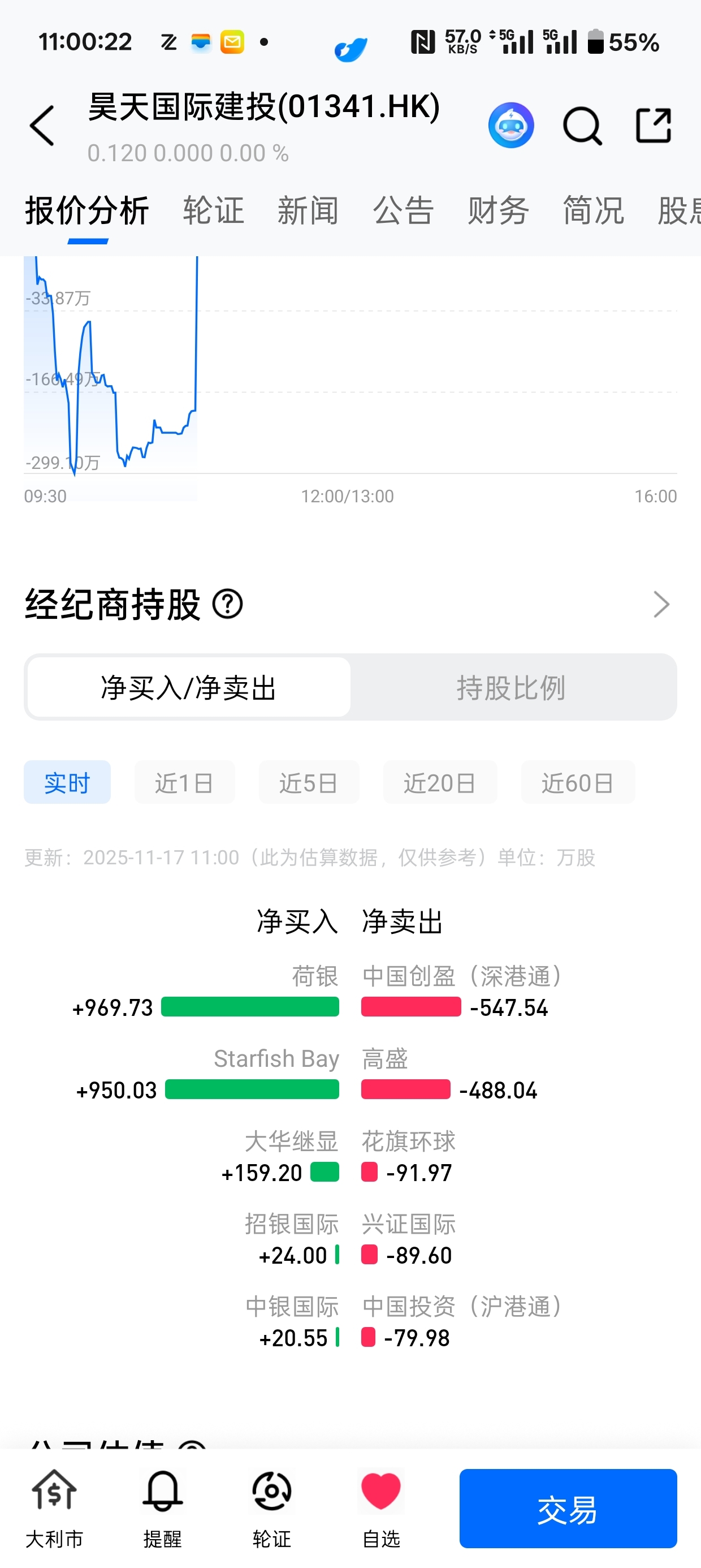 $昊天国际建投(HK|01341)$ 主动买卖盘口仅供参考