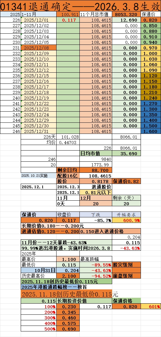 2025年最后20天——保通日均0.82元(锁死“退通”)